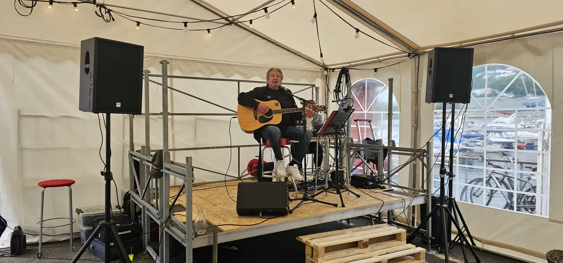 I teltet kunne du oppleve tryllekunstner og Helge Nilsen gledet besøkende med en flott minikonsert. Her kunne du sitte og spise hamburger, vafler, is (gratis for de under 3 fot) og en hotdog, samt ta en hyggelig maritim samtale.