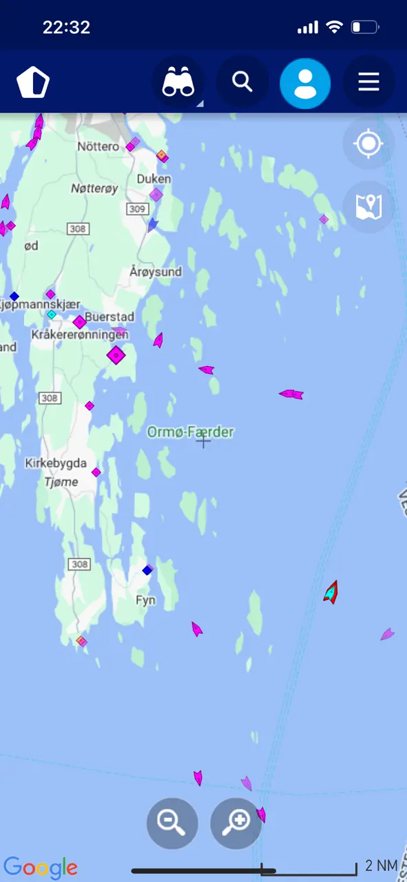 Denne gratisappen viser AIS-posisjonen til skip og fritidsbåter med AIS-sender. Det kan være en artig aktivitet en sommerdag, men også brukes til nytte på tur. Merk at det ikke anbefales å navigere etter denne appen, for eksempel under tåke og nattnavigasjon – selv om den vil kunne gi en viss pekepinn.
