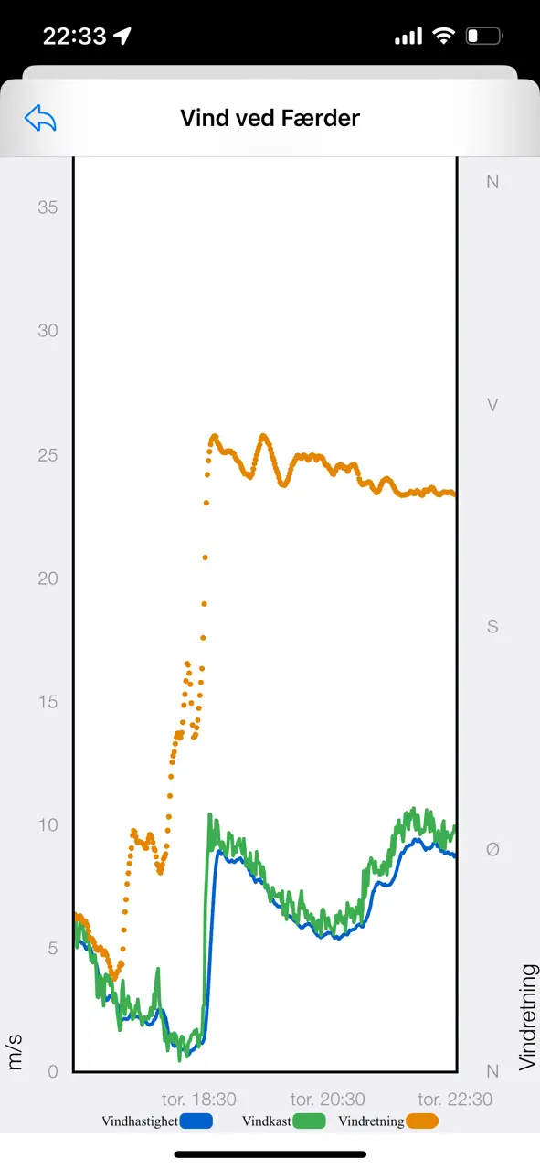 Dette er appen vi bruker aller mest før båttur. KystVær-appen er genialt enkel, og viser oppdaterte målinger fra værstasjoner langs kysten, ofte fyr – og i sanntid. Du ser vindhastighet, vindkast og vindretning, og kan se utvikling noen timer bak. Svært nyttig for å se hva det faktisk blåser dit du skal. Utgitt av Kystverket og helt gratis.