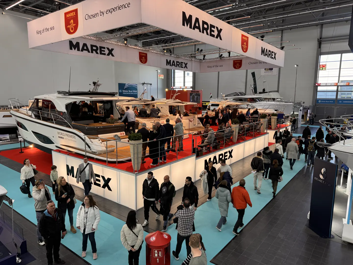 Verftet har vært fast inventar på messen i over 40 år, og i år markerer de seg sterkere enn noen gang. Med sin største stand noensinne – på over 500 kvadratmeter – viser Marex frem seks modeller, deriblant nyhetene 390 og 440 Scandinavia.