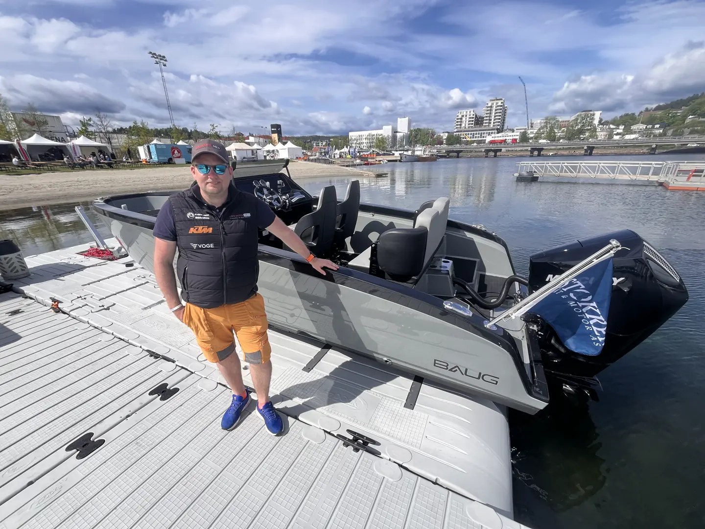 På årets messe presenterte han nyheten EZ Dock Optimus – en båtdock som kan tilpasses båter opptil 4,5 tonn og kan bygges etter behov til båtlengder på 16, 24 eller 32 fot. Til demonstrasjonen brukte de en Baug 21 med steppet skrog.