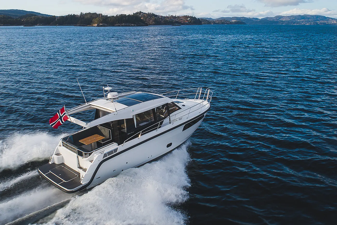 Skilsø 35 Panorama motoriseres med singel Yanmar fra 370 til 440 hk. Båten får en pris fra 2 815 000 kroner.