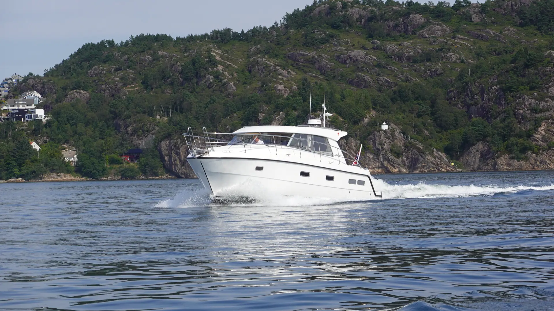 Den halvplandende båten er ingen sinke på fjorden, og vi fikk den 7 tonns tunge båten opp i hele 28 knop. Men det er ikke der man skal ligge på ferie tur, da kruser man fint i 22 knop eller mindre.