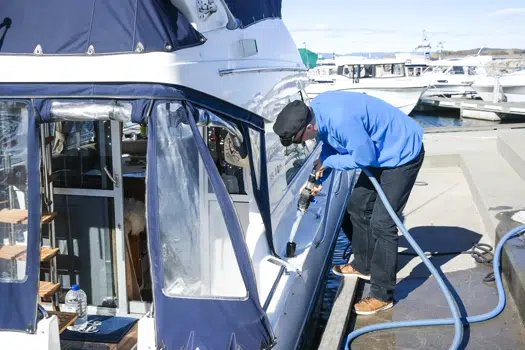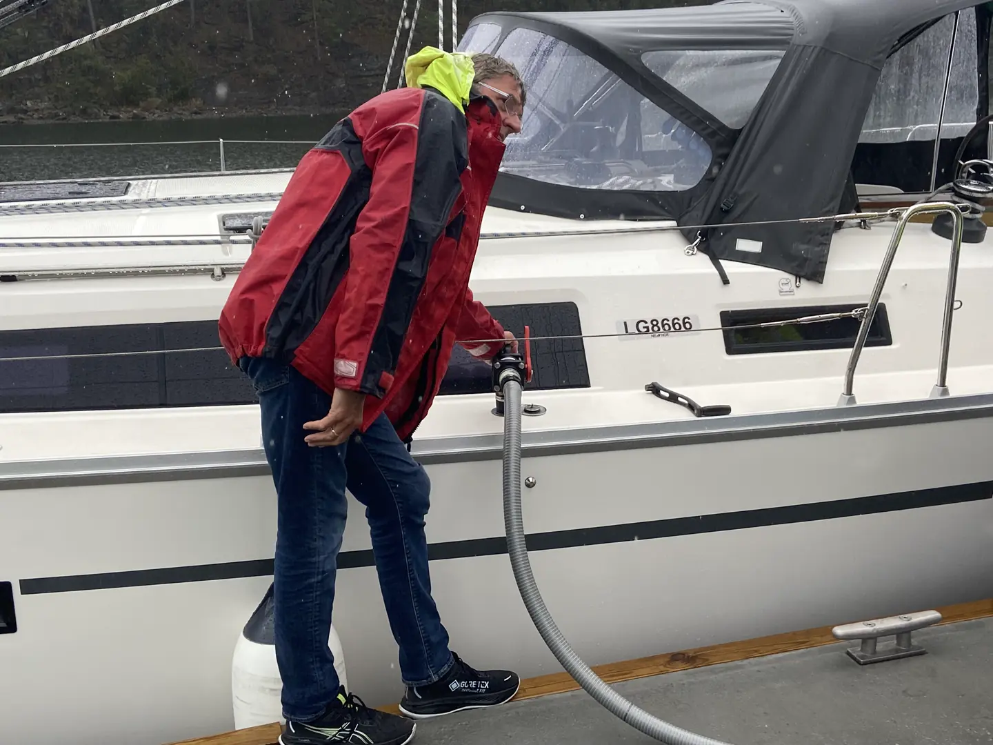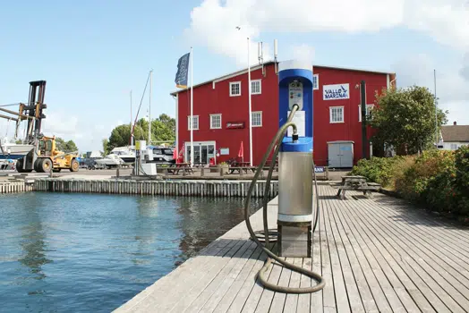 Det er grei tilgang til begge rom med store dører som heves, og god plass til å bevege seg. Sugeslangene er utstyrt med en gummifront som tetter godt, og hengt opp på stativer inne i slangerommet, og ikke på tromler, noe som tidligere kunne skape problemer. Alt i alt et anlegg som er lett å bruke, og vi båtfolk bør ønske oss flere av.