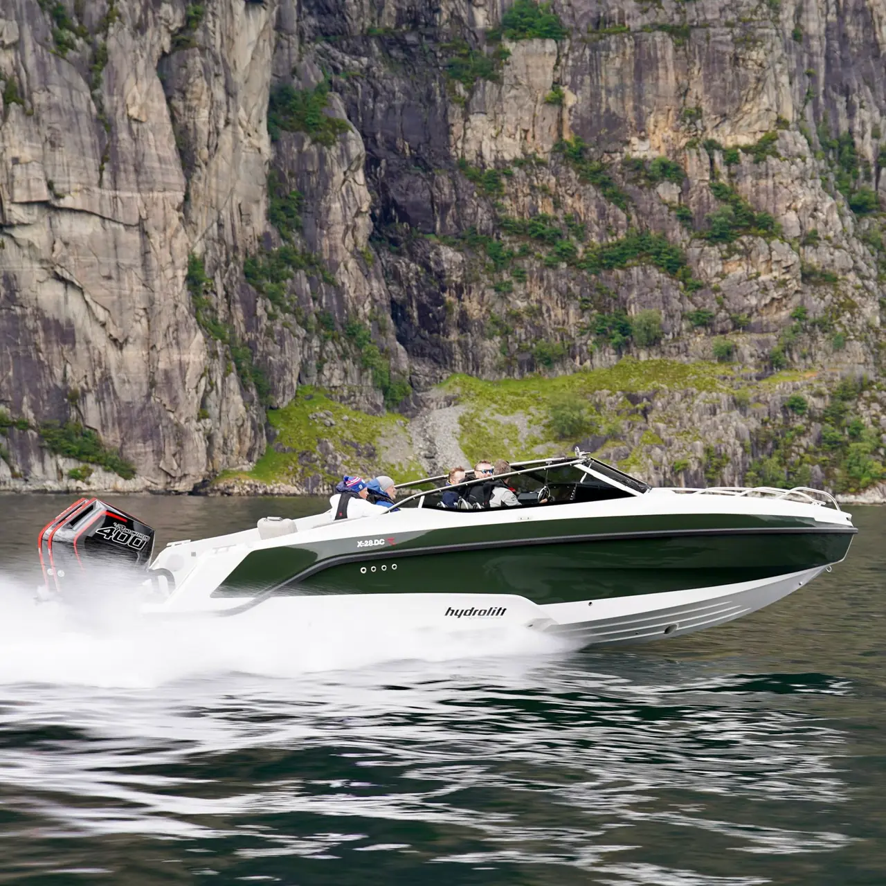 Nye Hydrolift X-28DC leveres med Mercury utenbordsmotor, singel eller dobbel, fra totalt 250 til 800 hk. Toppfarten estimeres fra 50 til hele 78 knop.