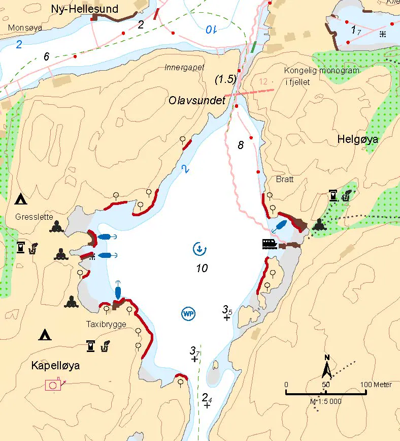 Det er fine turstier på begge sider i Olavsundet. På vestsiden kan du ta den omtalte stien til Verftet, og på østsiden anbefales turen opp til Tvillingvardene. Se omtale under forrige havn. Fergen stopper på østsiden av Olavsundet flere ganger om dagen.