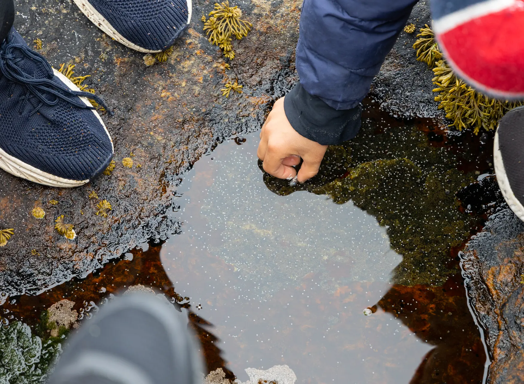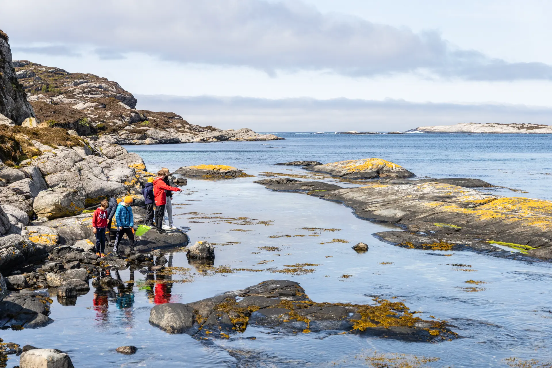 Vi går videre over glatte svaberg og jeg leter i pytter etter gamle blåskjell. Men det er ikke mange av de riktig store, gamle skjellene det var så mange av da jeg var liten. Blåskjellene jeg finner er små, ingen perler i dem, det er sikkert. Men heldigvis er det mye annet å oppdage.
