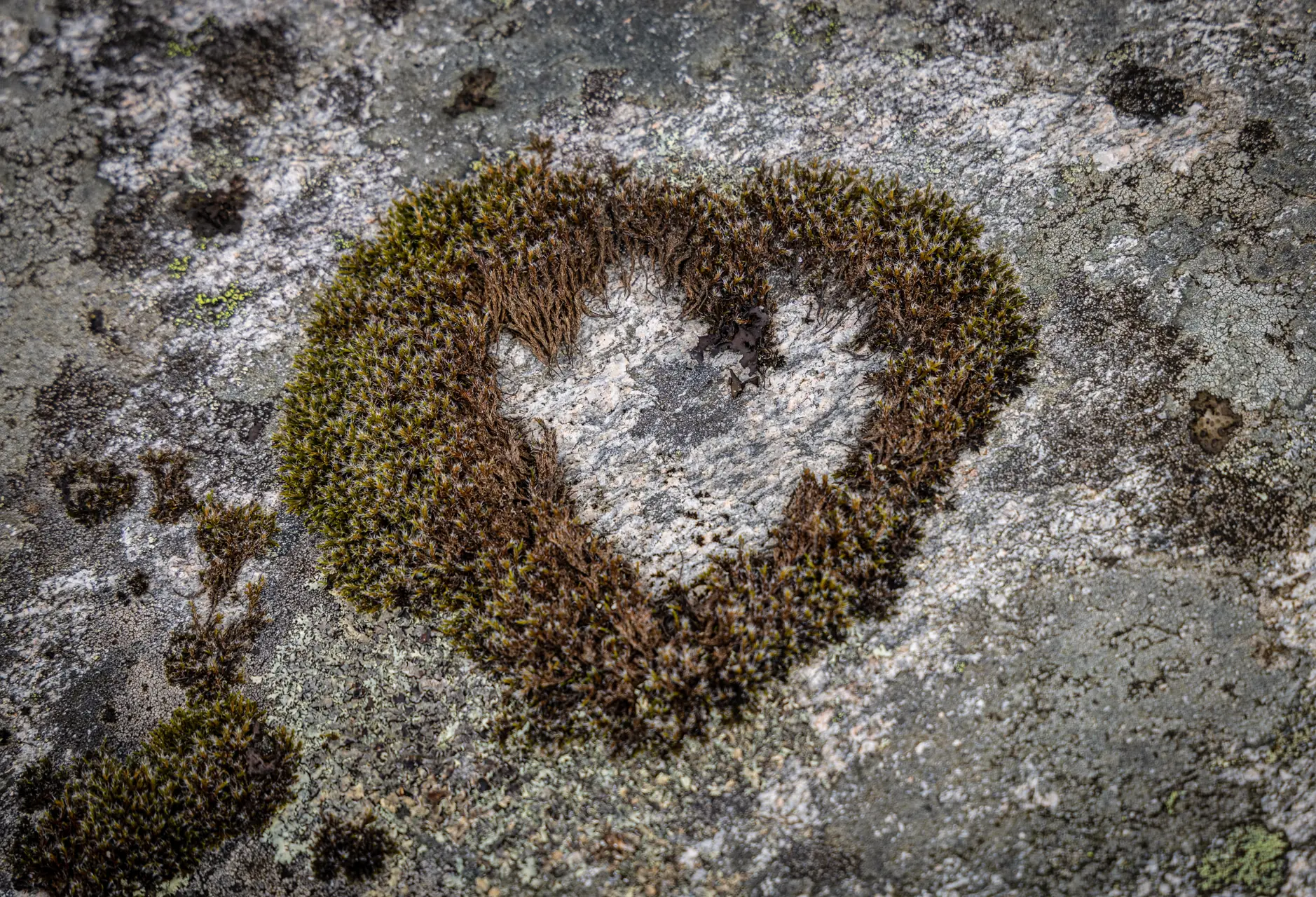– Og se her, sier Tomas og peker på en mosedott formet som et hjerte.