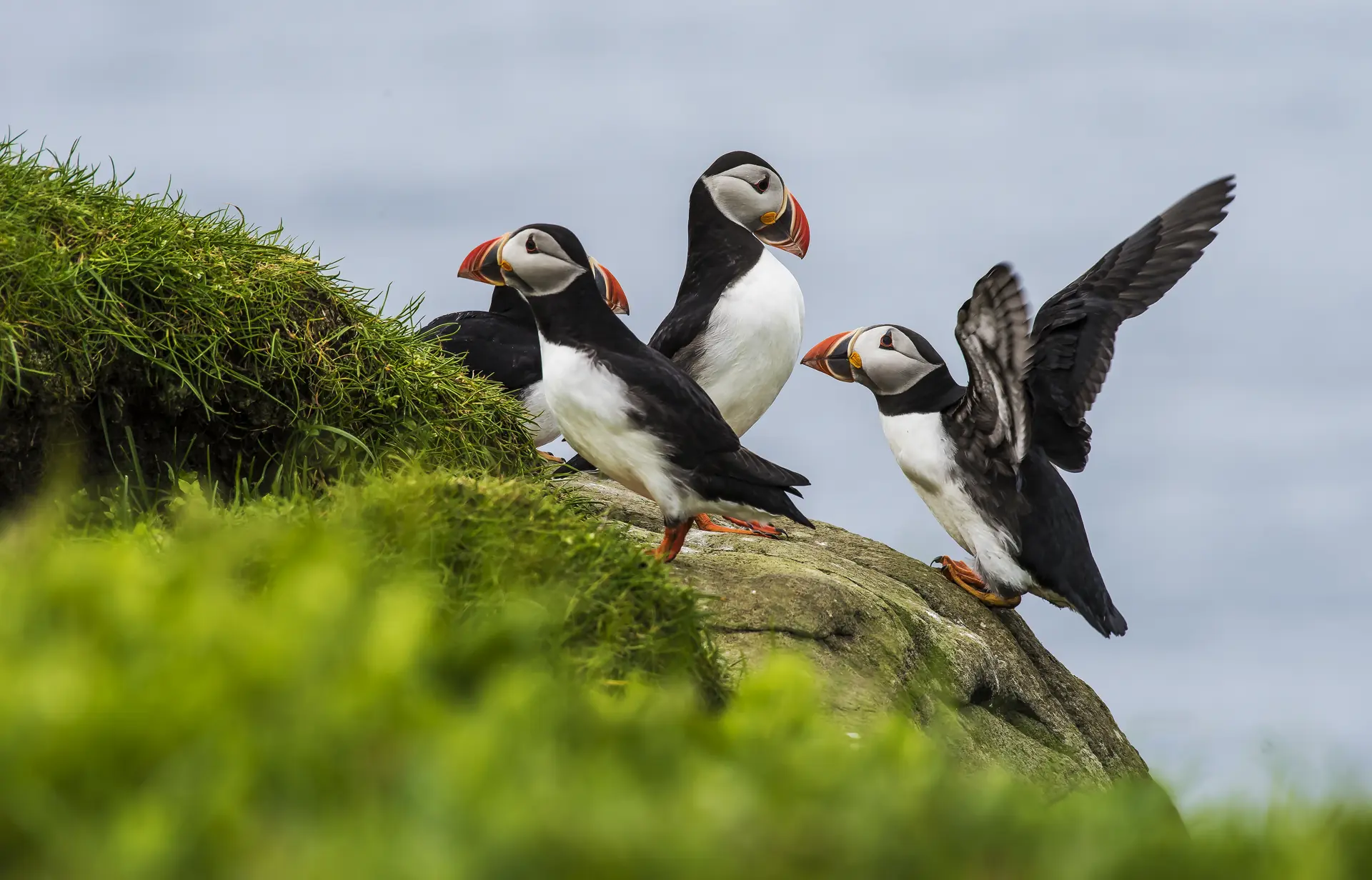 Færøyene, slik vi opplever det i dag, er på mange måter historien med sjatteringer i blått og grønt. Blått fordi øygruppen ligger midt i hjertet av Golfstrømmen i Nordatlanteren, midt mellom Island og Norge. Grønt fordi det tempererte øyklimaet gir sikkerhet for tilstrekkelig næring til alle landbaserte vekster – året rundt. Siden 1948 har Færøyene vært en selvstyrende del av det danske kongeriket. Øyriket går godt, takket være store ressurser i havet, turisme og ullprodukter. Sauene er avgjort i flertall på øyene, som bare er befolket av knappe 50 000 mennesker!