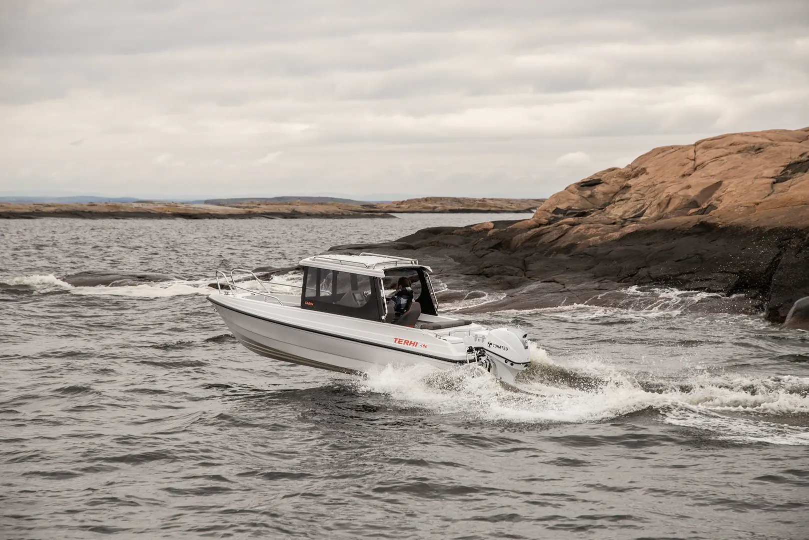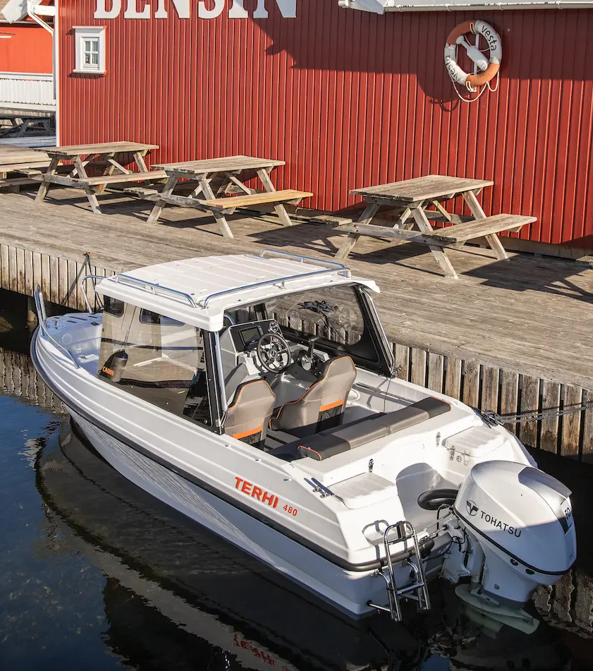 Terhi har fått en solid posisjon i landstedsbåtmarkedet, og er kjent for å levere solide og trygge sjøbåter. Terhi 480 Cabin er enkel å håndtere, manøvrere og føles trygg i sjøen. På akterspeilet leveres båten med Tohatsu 40-60 hk. Med en 50-hester gjør den nærmere 28 knop på maks hastighet og har en fin marsjfart på over 22 knop, noe som gjør at du kan kjøre drivstofføkonomisk og oppdage mer av skjærgården.