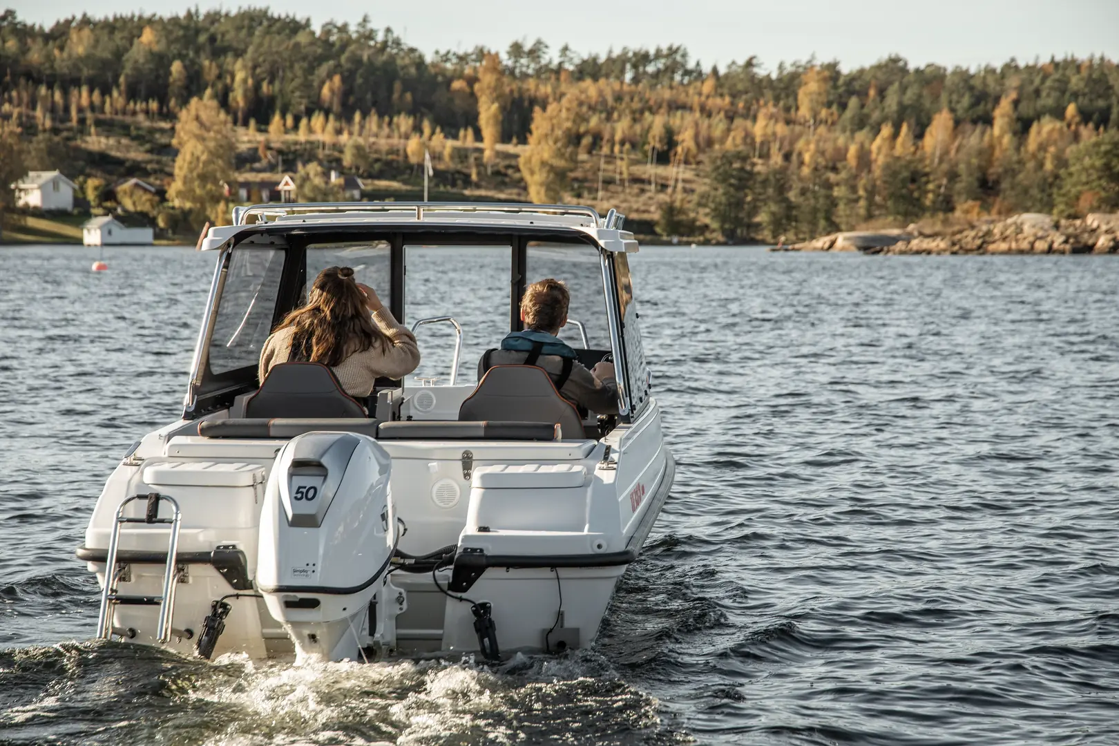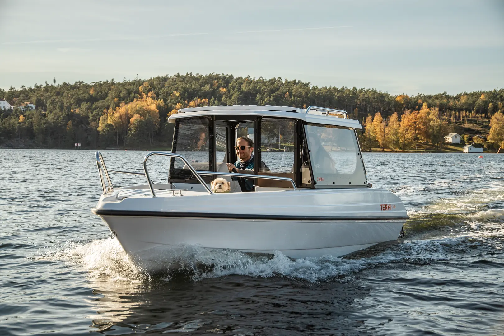Terhi 480 Cabin er godkjent for hele fem personer, og takket være den smarte layouten er båten beregnet for allsidig bruk gjennom hele året – det være seg turer til holmer og skjær, til og fra hytta, til trolling og fiske eller badeturer. At båten har en hard-top med store vinduer gjør at du kan holde den sure vinden eller regnet borte. Med en kalesje som settes opp i løpet av minutter har du i praksis en helt lukket båt – og kalesjen felles ned i sin egen kalesjegarasje helt akter.