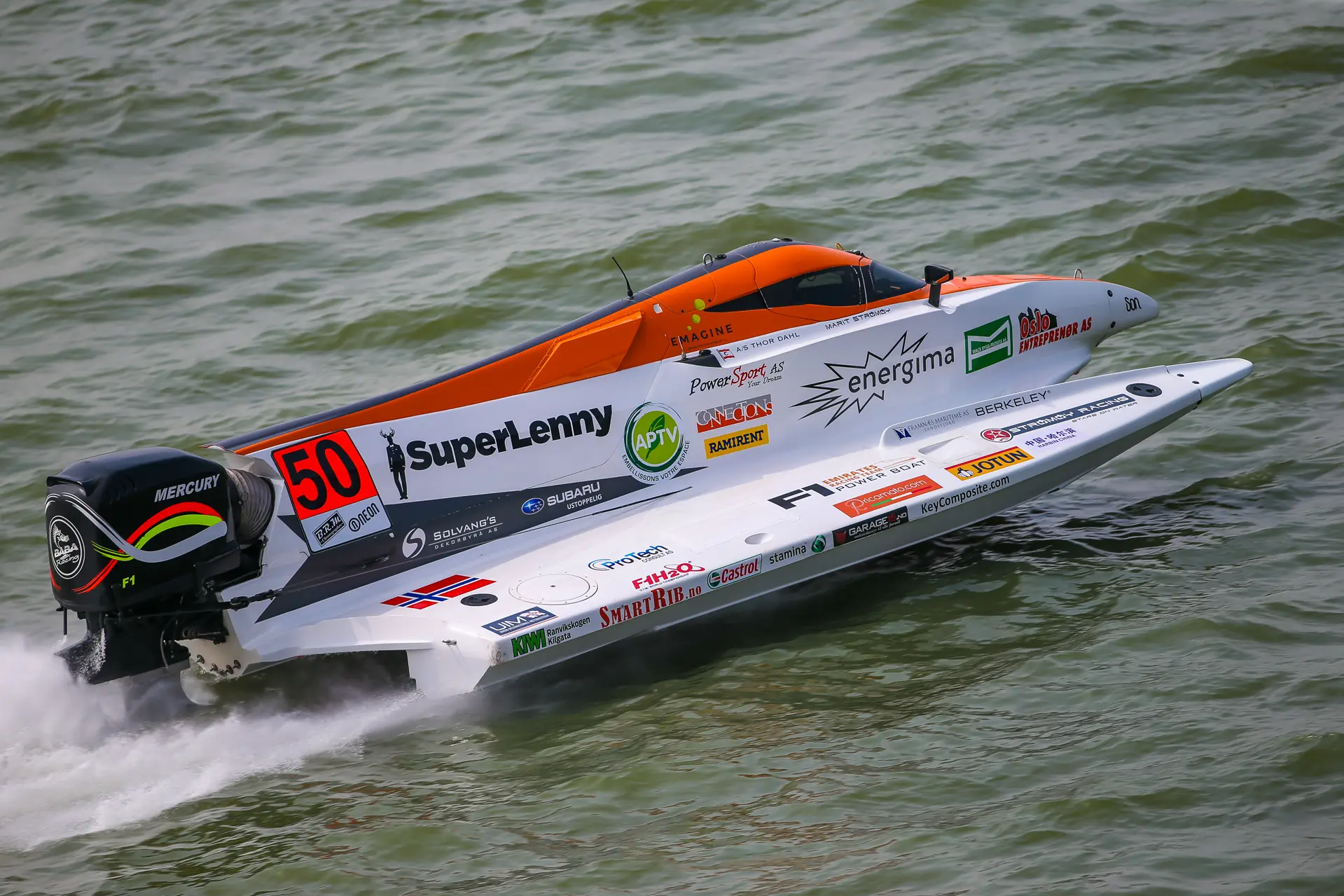 Det er denne klassen de nå kjører i Tønsberg. Målet var hele tiden Formel 1, og i 2007 ble jeg tilbudt å prøve meg i Formel 1 for første gang. Formel 1 er katamaraner på 17 fot med opptil 400 hk og toppfart 220 km/t. I svingene har vi opp mot 8G.