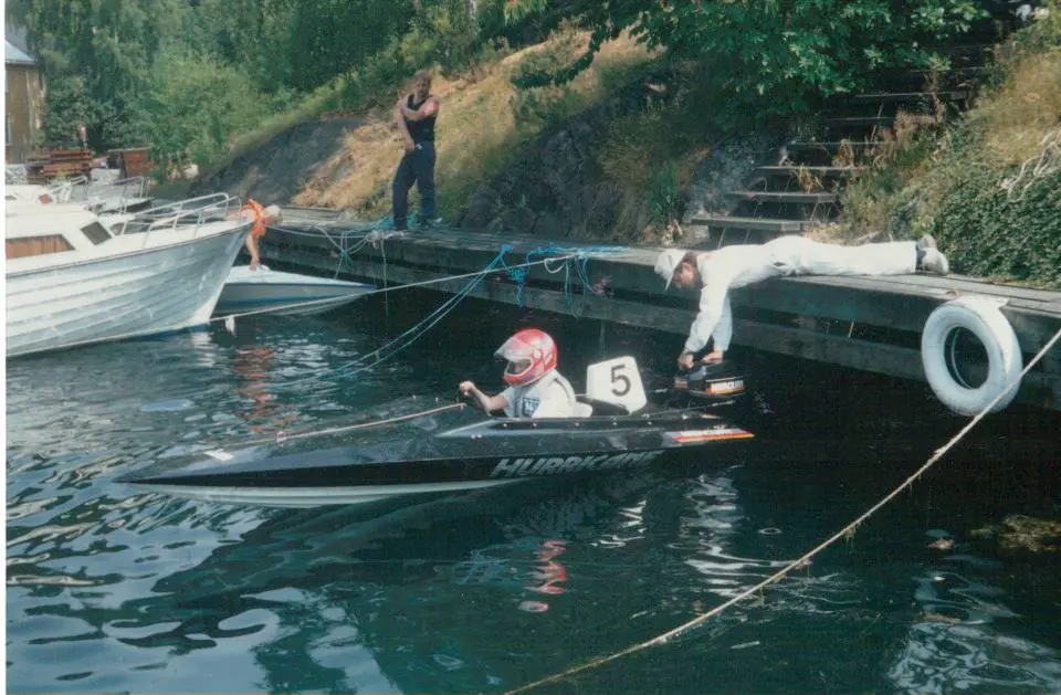 - Jeg kjørte T 250 før jeg avanserte til S 550 som 16 åring. S550 var en større rundbaneklasse som selv etter nåtidens begreper gikk fort nok i massevis. Vi kjørte 120 km/t og satt i åpen cockpit, i blind tillit til hjelm og Øbergs håndsydde racing livvester. Jeg kjørte S550 i syv år, og ble Europamester i 1996-98 og 99! I 1999 startet jeg også i Formel 2, som er katamaraner med 250 hk., og en toppfart på cirka 180 km/t.
