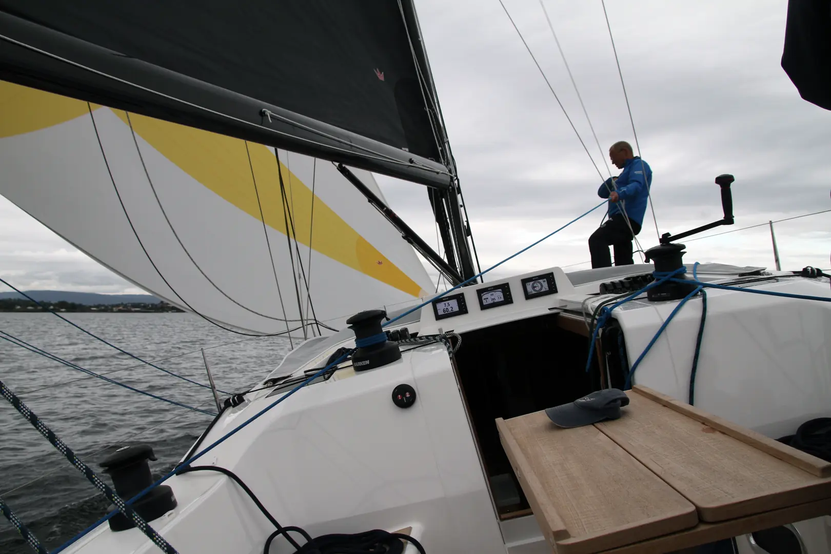Hans Kristian Braaten Olsen likte også seilegenskapene fra prøveseilasen. – Under vår test blåste det mellom 4 og 8 knop true wind. På kryss var farten hele tiden cirka en knop under vindhastighten, til tider mindre. Jeg opplevde en fin balanse i båten og liten krengning, også med gennaker. Under krengning er det flere komfortable måter rormannen kunne plassere seg, inklusive hevbare fotstøtter. Med et litt mindre forseil enn det som var på testbåten kunne man også koble til en selvslående fokk, oppsummerer han.