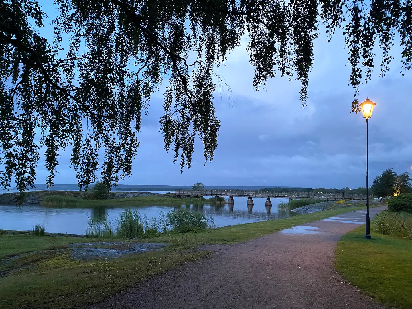 Mye regn etter vi la til førte til en ny dose med bøker, men etterhvert lot været oss ta en romslig spasertur i byen og en liten runde i det fine parkområdet som gjestehavnen er en del av. Vi samlet oss i en båt på kvelden, oppsummerte dagen, så litt fremover og avsluttet med et par gode runder femkamp (kortspill).