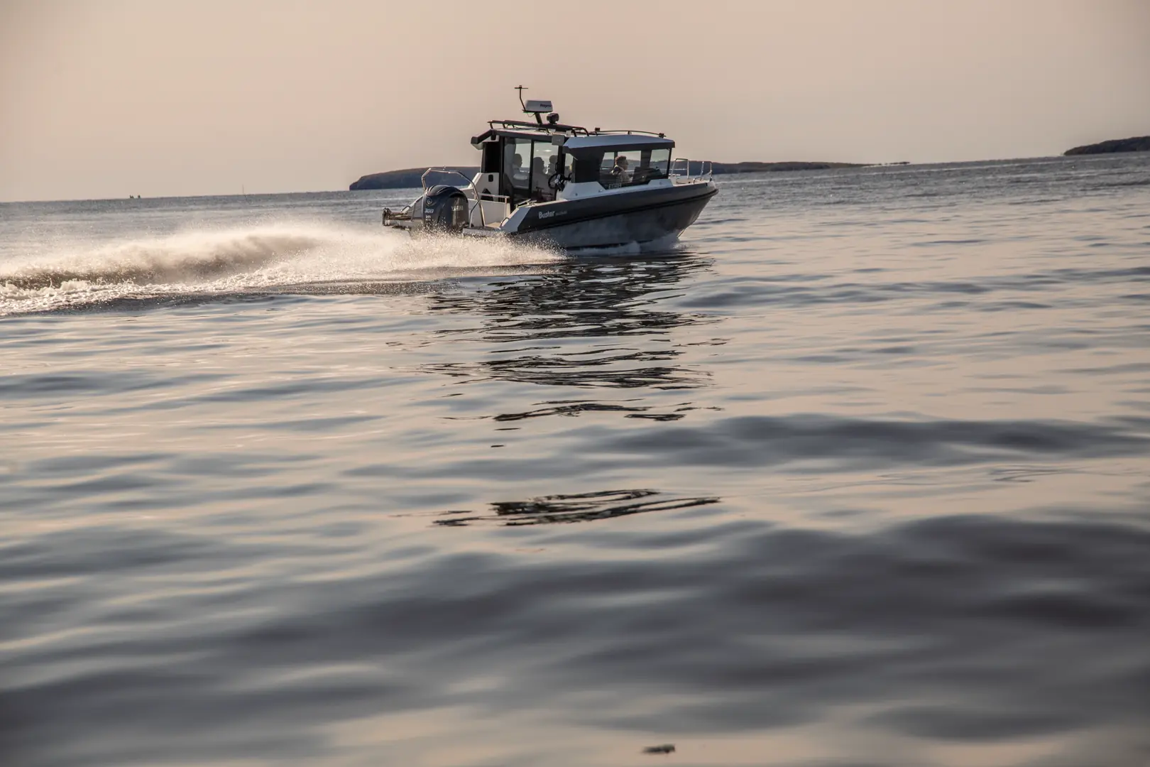 Båtens bruksområder er mange, men det som etter vår erfaring står igjen som en viktig egenskap, er kjøreopplevelsen båten gir. Her bidrar et godt førermiljø vi har lite å utsette på. Vår testbåt er en ett år gammel demobåt som virkelig er topputstyrt – med ekstrautstyr som radar, utendørs førerkonsoll, Yamahas Helm Master EX-system med joystick-styring og autopilot, AIS, solcellepanel på taket, landstrøm, varmeapparat, lyskaster(e) og ankervinsj akter. Det eneste som mangler og kunne gitt en enda bedre opplevelse er offshore stolstativ med demping for førersetet.