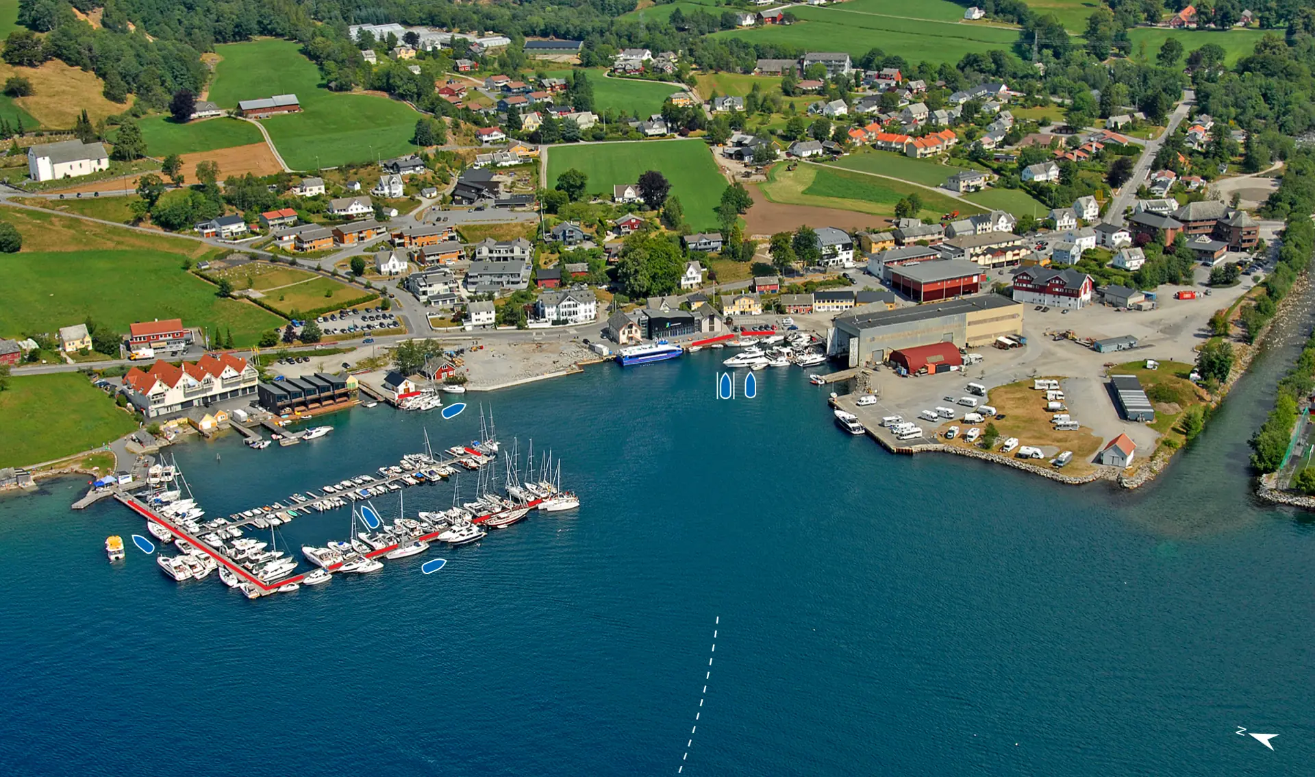 Trekaia og flytebrygga øst for rutebåtkaia og betongbrygga innenfor flytebryggene er også gode og populære alternativer. Her inne ligger du litt lunere enn ved flytebryggene.
