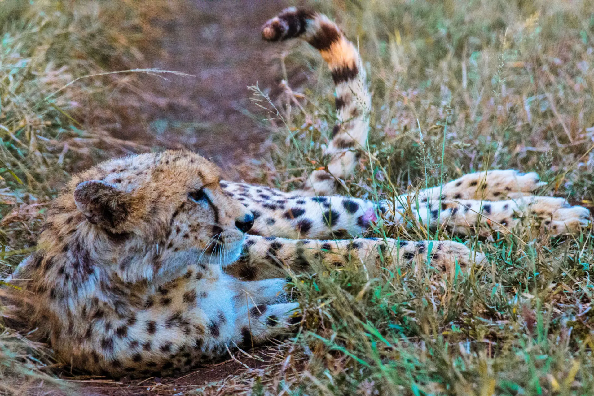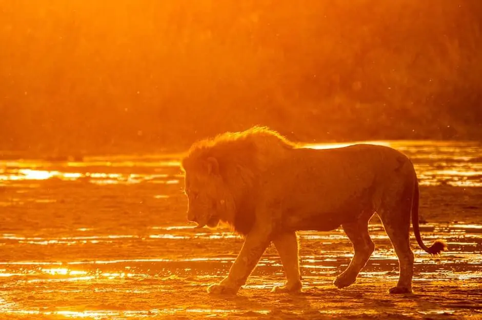I Mr. Andrew hadde vi den beste safariguiden tenkelig. Etter mottoet «Vi måtte jo få møte Afrikas konge, og helst en elefant eller to», erobret pickupen stadig mer humpete off-road terreng. Plutselig stod de bare der, midt på hoved-tracken. To par løvepupiller stirret oss rett inn øyene! Det ble stille i baksetet, vi fikk streng beskjed om ikke å reise oss opp. En av hannene lå henslengt i gresset, den andre spankulerte litt rundt. Adrenalinet pumpet, hva var neste “move”? Vel, det var solnedgang og løvene hadde antageligvis skippet både frokost og lunsj, og jaktinstinktet økte i takt med skumringen. Var vi trygge?