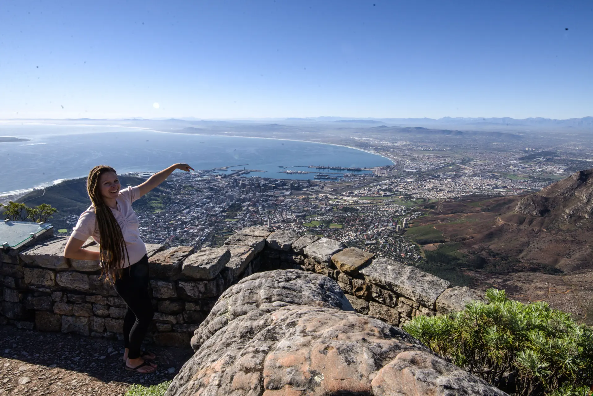 Noe raget imidlertid enda høyere enn pariserhjulet, nemlig det berømte Table Mountain som simpelthen måtte bestiges. Vi jukset og tok gondolbanen helt opp. Navnet er innlysende – fjellet er formet som et eneste stort langbord, og det gjør seg utmerket for å spankulere på kanten av stupet.