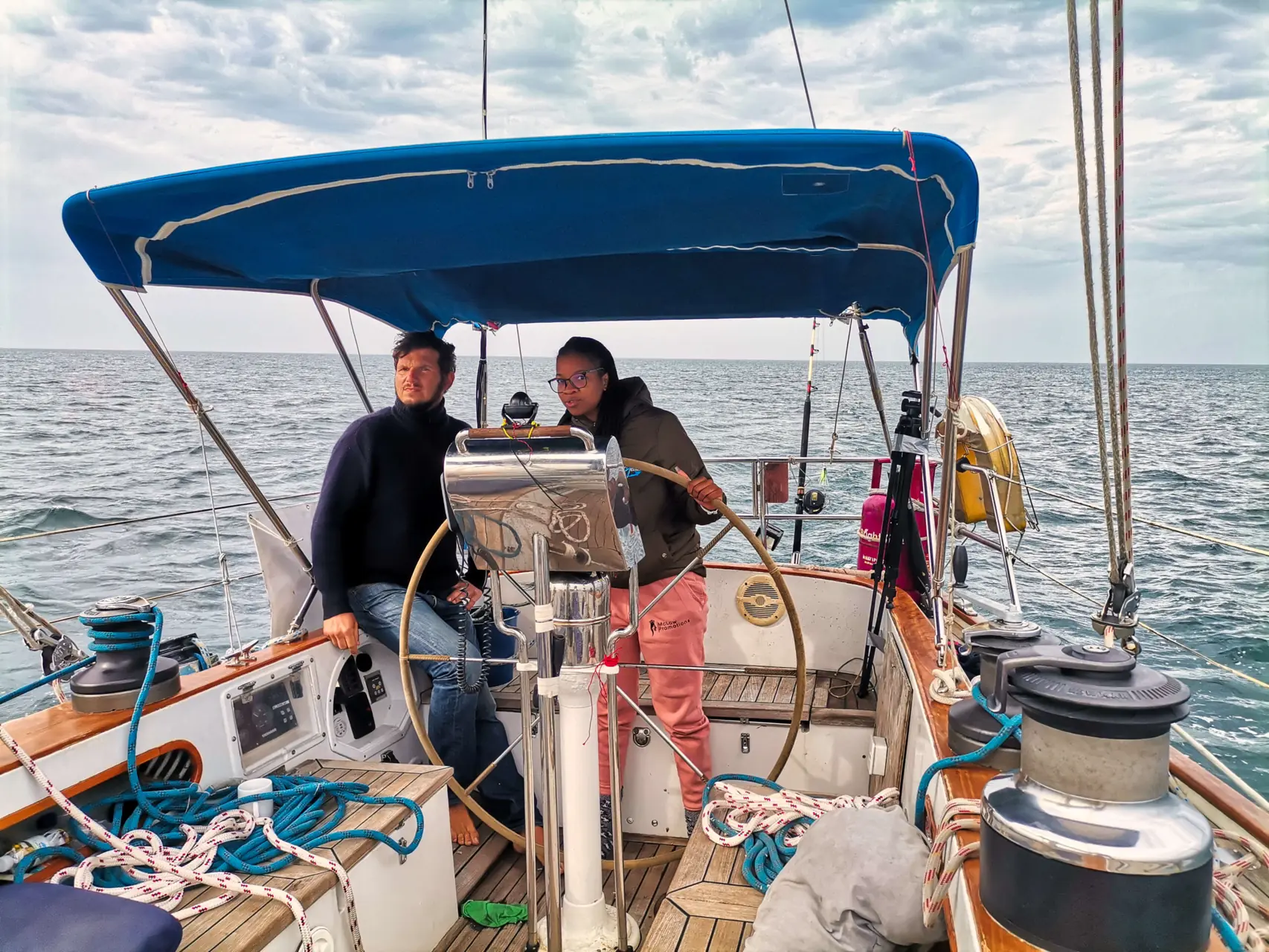 Tross tretti år med post-apartheid og en hvit minoritetsbefolkning på ca.20%, var yachtklubben dominert av hvite medlemmer. Unntaket var Zamah McLaw – et fargerikt og muntert innslag fra Zulukulturen. Long story short: Nå skulle hun mønstre på båten og seile med oss til Cape Town. Yachtklubb-admiral Jackie var i fyr og flamme – en slik bragd var nemlig historisk for en zulukvinne! Særdeles sensasjonelt var det at nettopp hennes yachtklubb var springbrettet for dette seileventyret.
