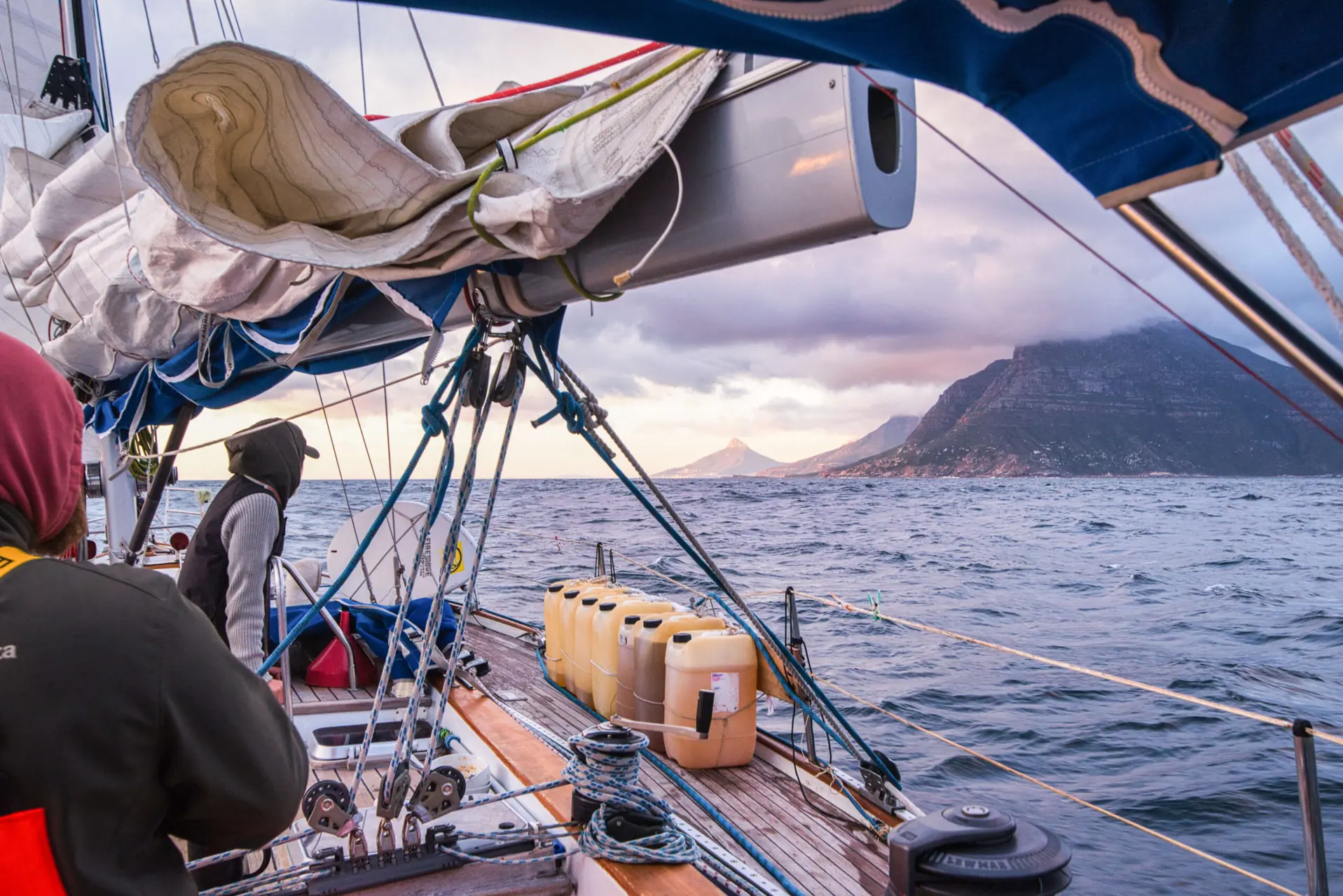 Zamah avslørte mer og mer av sin hyperinteressante bakgrunn. Født inn i en familie der flerkoneri var helt naturlig, fortalte hun usensurert om alt fra brudepris til svart magi. Bruken av kjærlighets-eliksir – kanskje bedre kjent fra filmverdenen som “love potion” – fikk vi servert i detalj. Det var interessant hvordan Zamah, som tidligere jusstudent og nåværende innehaver av sitt eget reisebyrå, hadde et bein godt plantet i begge verdener av det sørafrikanske samfunnet. Mens lavtrykkene hang over oss og vi andre støttet oss til predictwind, windy og sjøkart, sverget Zamah til ritualer som skulle blidgjøre havguden og gi oss en trygg seilas ned mot Kappet.