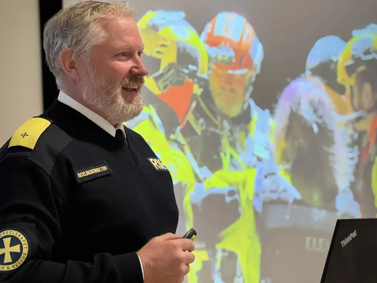 Matt Skuse, direktør for RS Akademiet, delte fakta om overlevelse i kalde farvann. Han la vekt på at det første minuttet bør brukes til å få kontroll på pusten og legge en plan for egen redning. Mange i salen sperret opp øynene da han fortalte at det tar rundt 30 minutter før man begynner å utvikle hypotermi dersom man faller i 2 grader kaldt vann med vanlige klær.