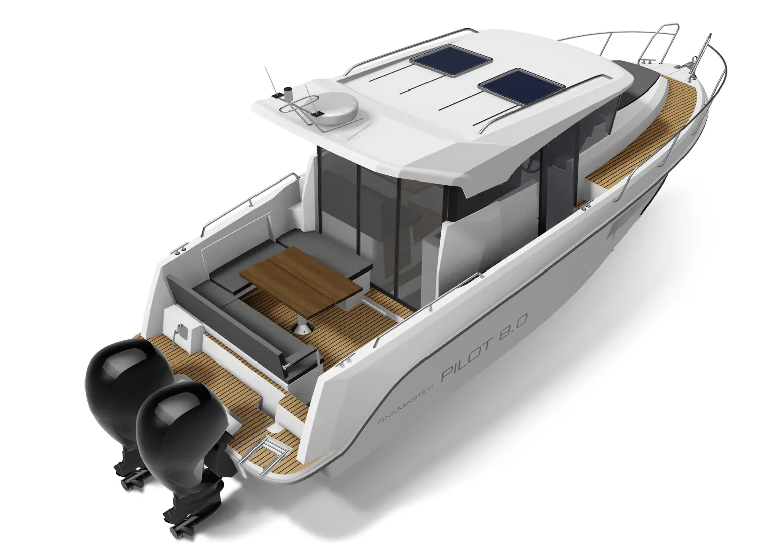 Finnmaster Pilot 8.0 er beregnet for motorstørrelse fra 200 til 300 hk eller 2 x 150 hk.