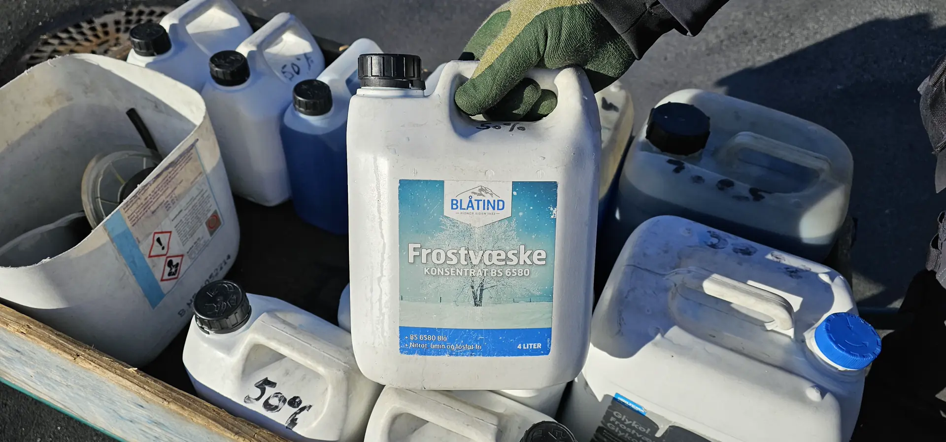 Det skal 20l med frostveske pr motor, dermed er vi oppe i 40 liter. Oljeskift til 2 x D13 på 1000 hk krever også noen liter. Vanntanker er renset med lukt og smakfri veske, for å nevne andre prosedyrer