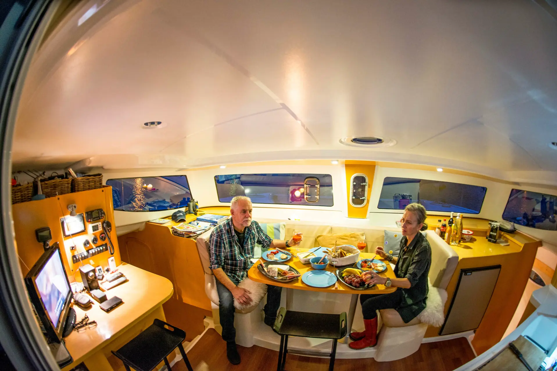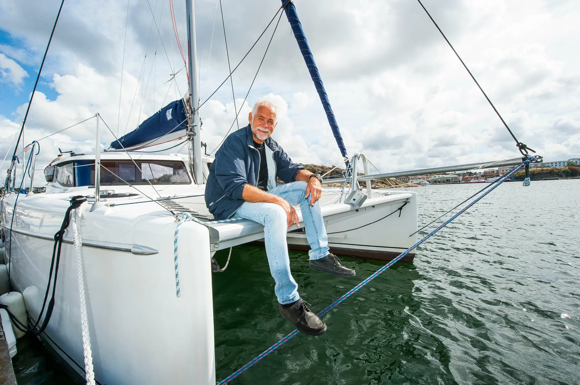Men det er Tor som ordner med båten. Grid må medgi at hun ikke får helt lov til å overta styringen på den 36 fot store katamaranen. – Vel, det er jo hvis noe skjer da, prøver Tor seg frampå og smiler og gir til kjenne at det absolutt ikke er noe enten eller.