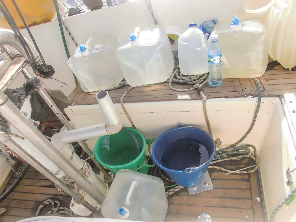 Vi fikk merke dette da vi krysset Stillehavet. Vi var tre personer på “Amanda”, som kunne romme maks. 320 liter med ferskvann. Det vil si at vi hadde nok vann om bord til en passasje på ca. 30 dager. Problemet vårt ble at passasjen fra Panama varte i til sammen 46 dager, og regnet som vi hadde håpet på å bruke for å supplere, uteble. Vi endte opp med å rasjonere vannet til et absolutt minimum på. Vannregimet per person lød: 1,8 liter vann den ene dagen og 1,2(!) liter neste. Slik fortsatte det annenhver dag til vi ankom Fransk Polynesia med syv liter vann i tanken.