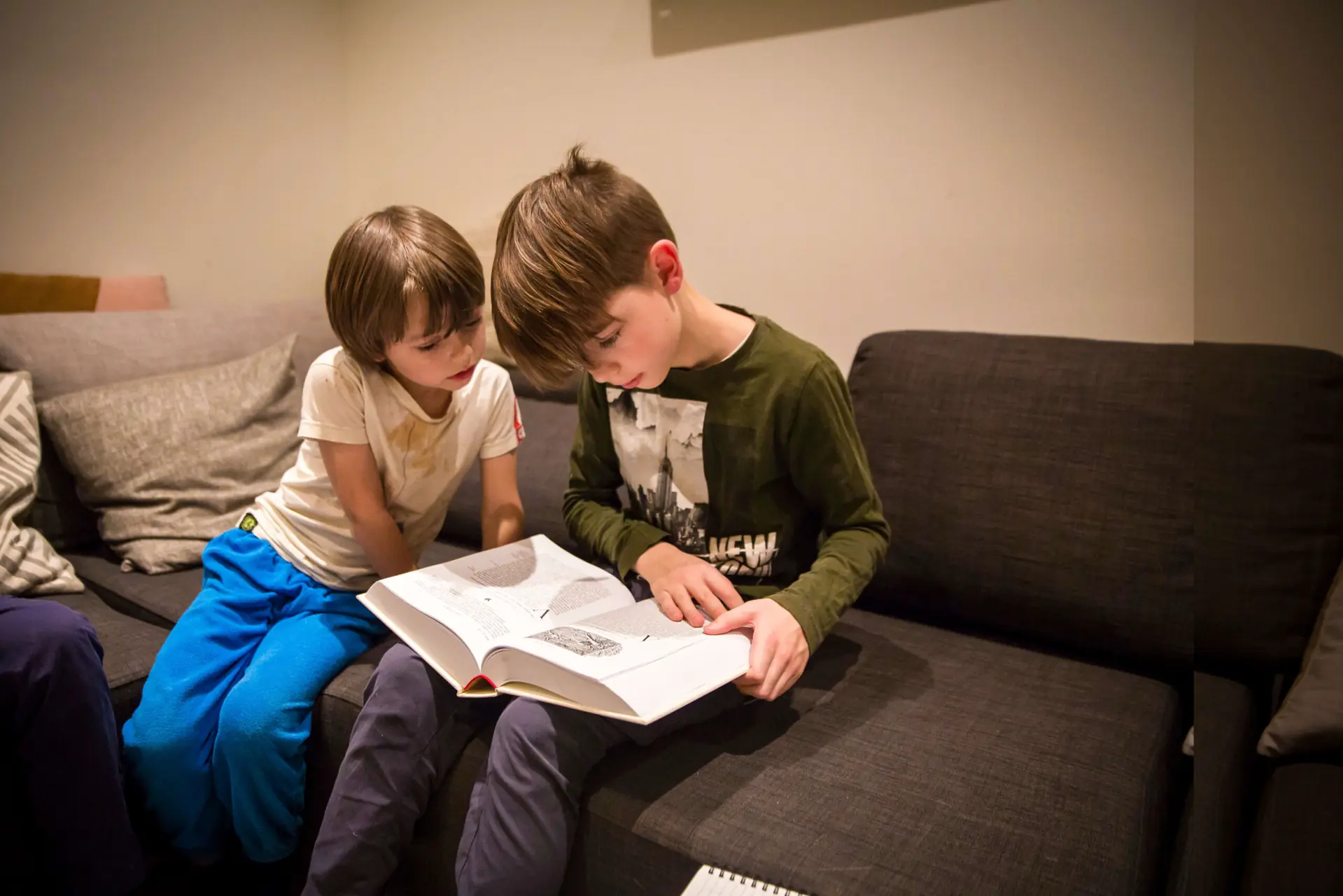 Lyder (8) tar boken på fanget sitt.