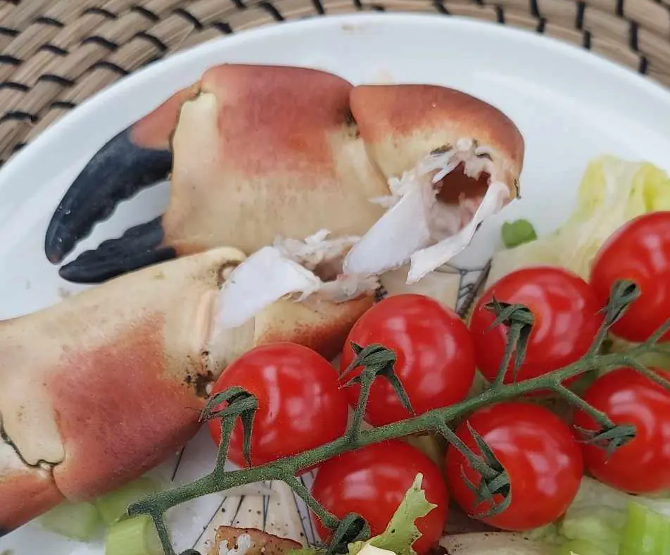Teinen slapp de ned i går kveld i havnen, og jammen var det stor krabbe i den i morges – kan det bli bedre, spør hun?