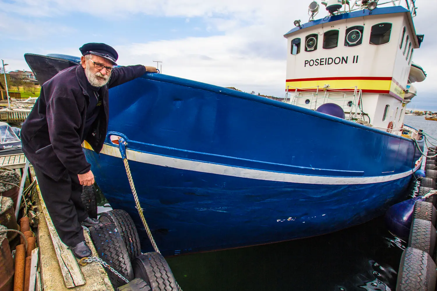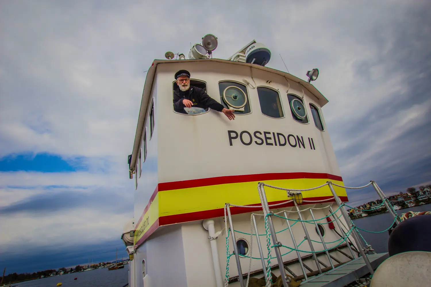 Vi møter ham om bord i hans POSEIDON II, den tidligere svenske redningskrysseren GRÄNGESBERG, en båt på 72 fot, med en tonnasje på 88 brutto og en vekt på godt over 100 tonn. Og hele ekvipasjen ligger ved båtskolens kai utenfor det store naustet, som Jan har fylt med godsaker for den maritimt interesserte… Ja, det er lett å bli ordknapp når du skal intervjue slike personligheter…