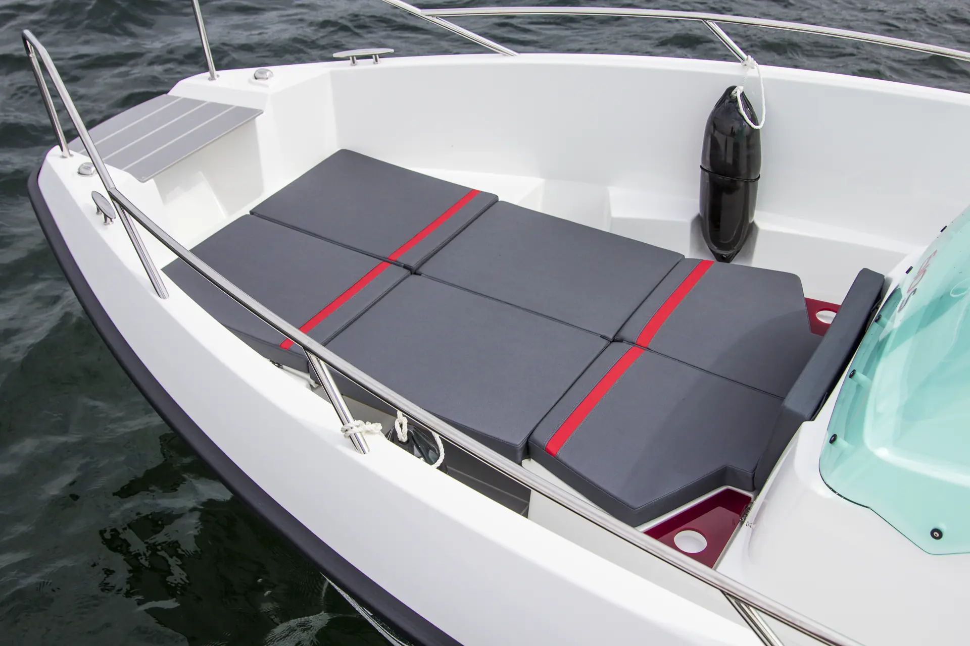 Sting 610 er bygget for familien, og derfor er det gledelig å se de høye fribordene og rekkene forut, som gir en trygg båt. For 610 S, som er åpen forut, har designer Thorup også brukt hodet. Uten bruk av løse mellomleggsplater har han klart å få laget en solseng fra baug til styrekonsollen – takket være at disse blir «gjemt» under stuverommet forut.