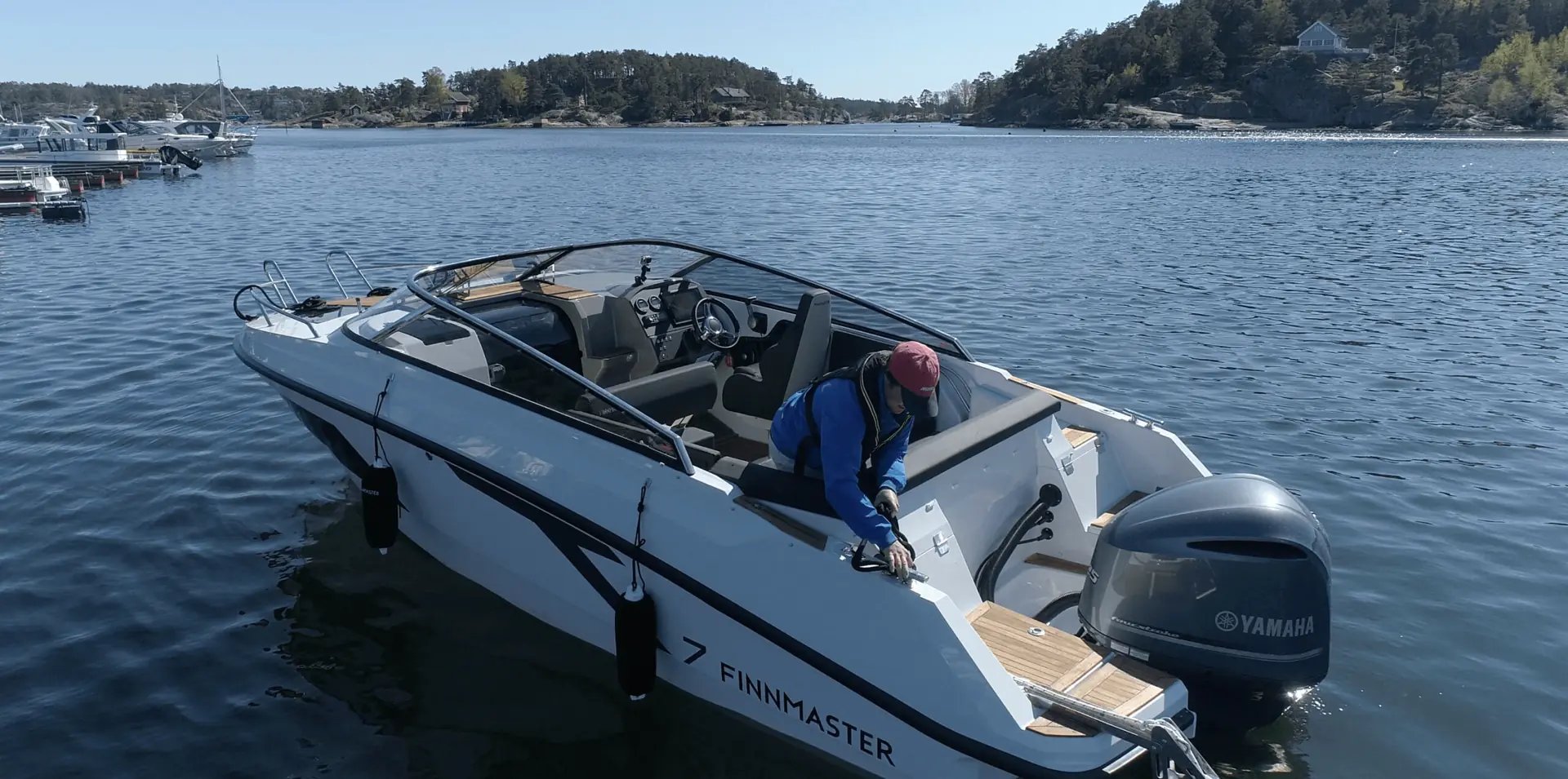Vi skal starte med en veldig kort innføring i prinsippene bak det å håndtere en båt. Vi tar utgangspunkt i en båt med utenbordsmotor akter, som vi da også svinger med, men for at den skal lystre ordentlig holder det ikke bare med at vi bruker rattet – vi må også bruke gasshendelen, da båten ikke har et eget, separat ror. I motsetning til en bil, svinger en båt med rompa. Prøv og forestill deg hvordan båten reagerer når du gir gass - «skyver» eller bakker «trekker» båten med hekken.