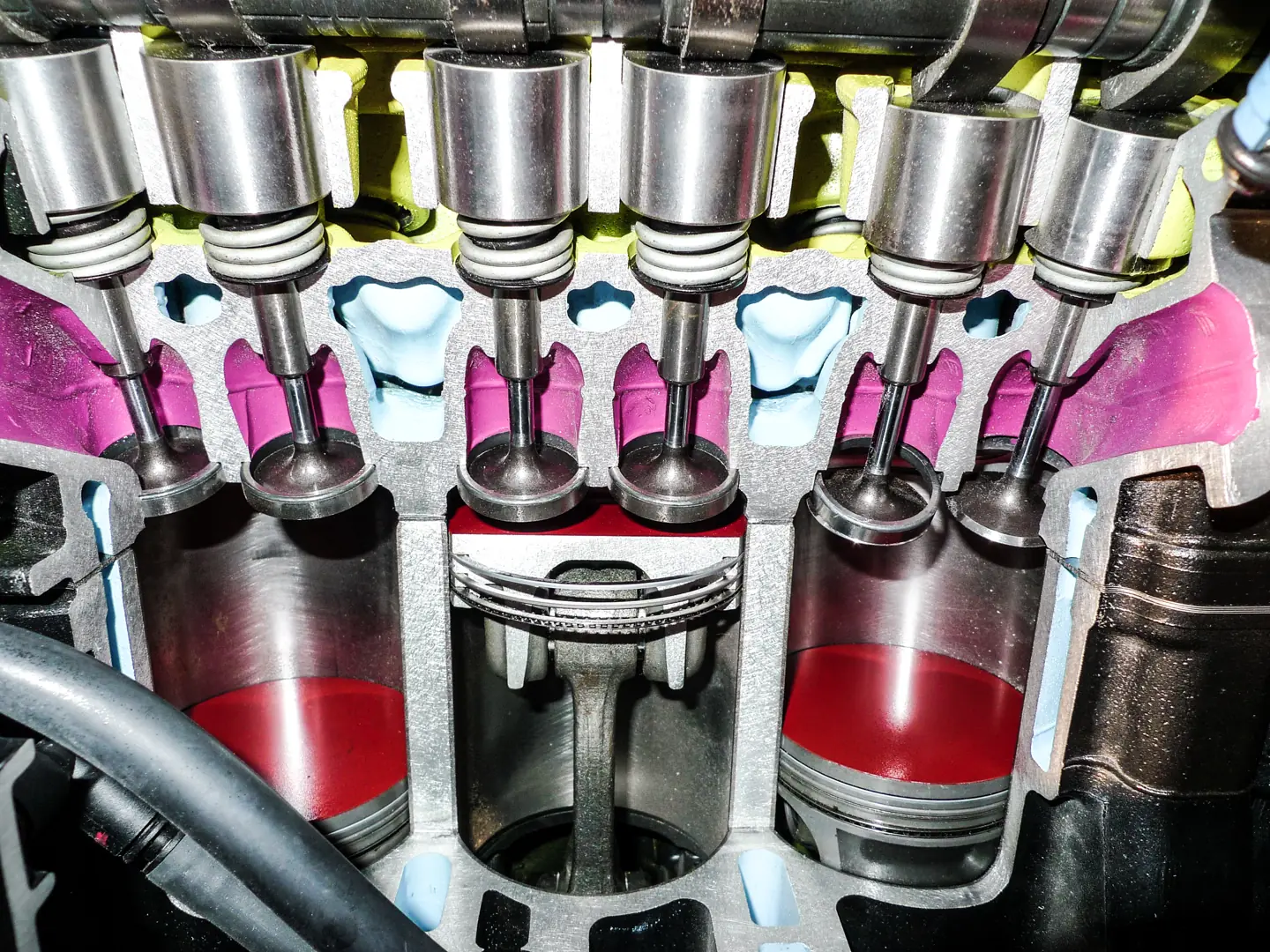 Trykkforhold, åpningstider og formgiving av komponentene etterstreber best mulig presisjon i overgangen mellom eksos og ny drivstoffblanding.
