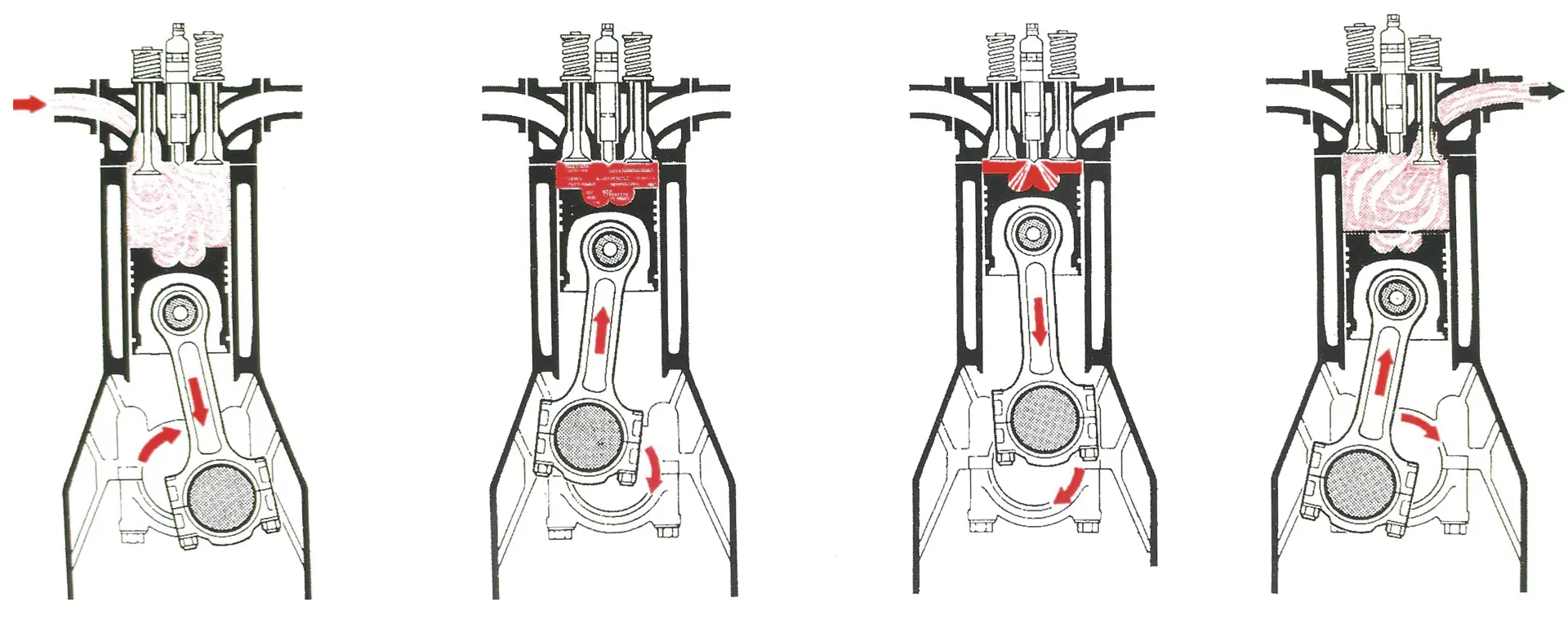 Hver takt tilsvarer en halv omdreining av veivakselen, altså én komplett stempelbevegelse opp eller ned.