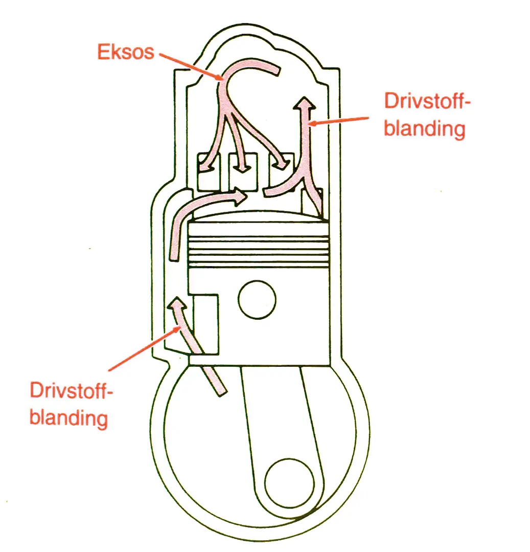 Til forskjell fra firetaktsmotoren er sylindren til totaktsmotoren ikke tett. I sin enkleste form har den tre åpne porter i veggene. Det er innløpsport, eksosport og innsugsport. Litt mer Stempelet sørger for gjennomstrømningen.