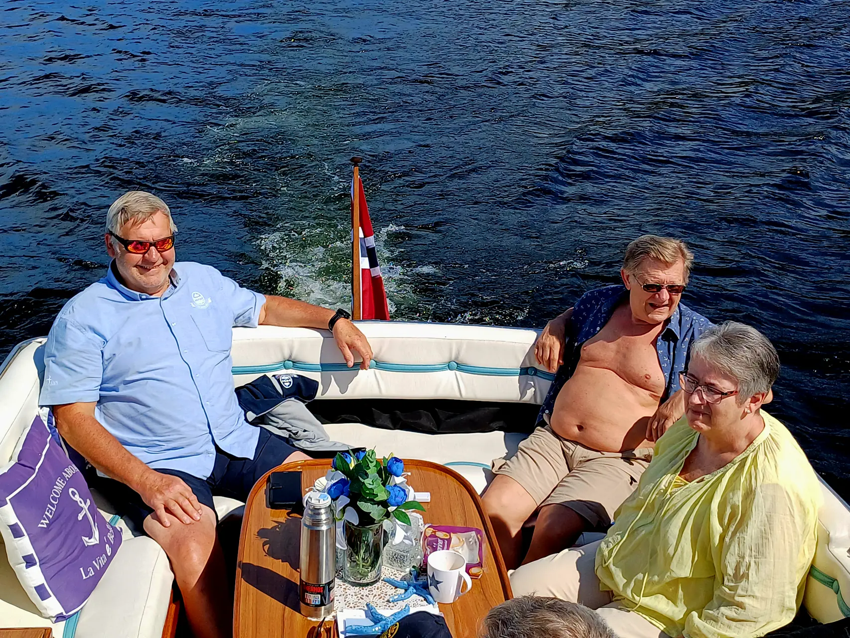 Det har vært en flott respons på dette tilbudet og vi satte max 15 båter på denne første turen. Viktig å ikke gape over for mye første gangen vi gjør dette. Årnes båtforening som ligger i Glomma skulle også ha mulighet til å gjeste alle båtene over natten og Elvekongen er ikke den største passasjerfergen, og med ustabilt vær måtte vi ta hensyn til det i planleggingen.