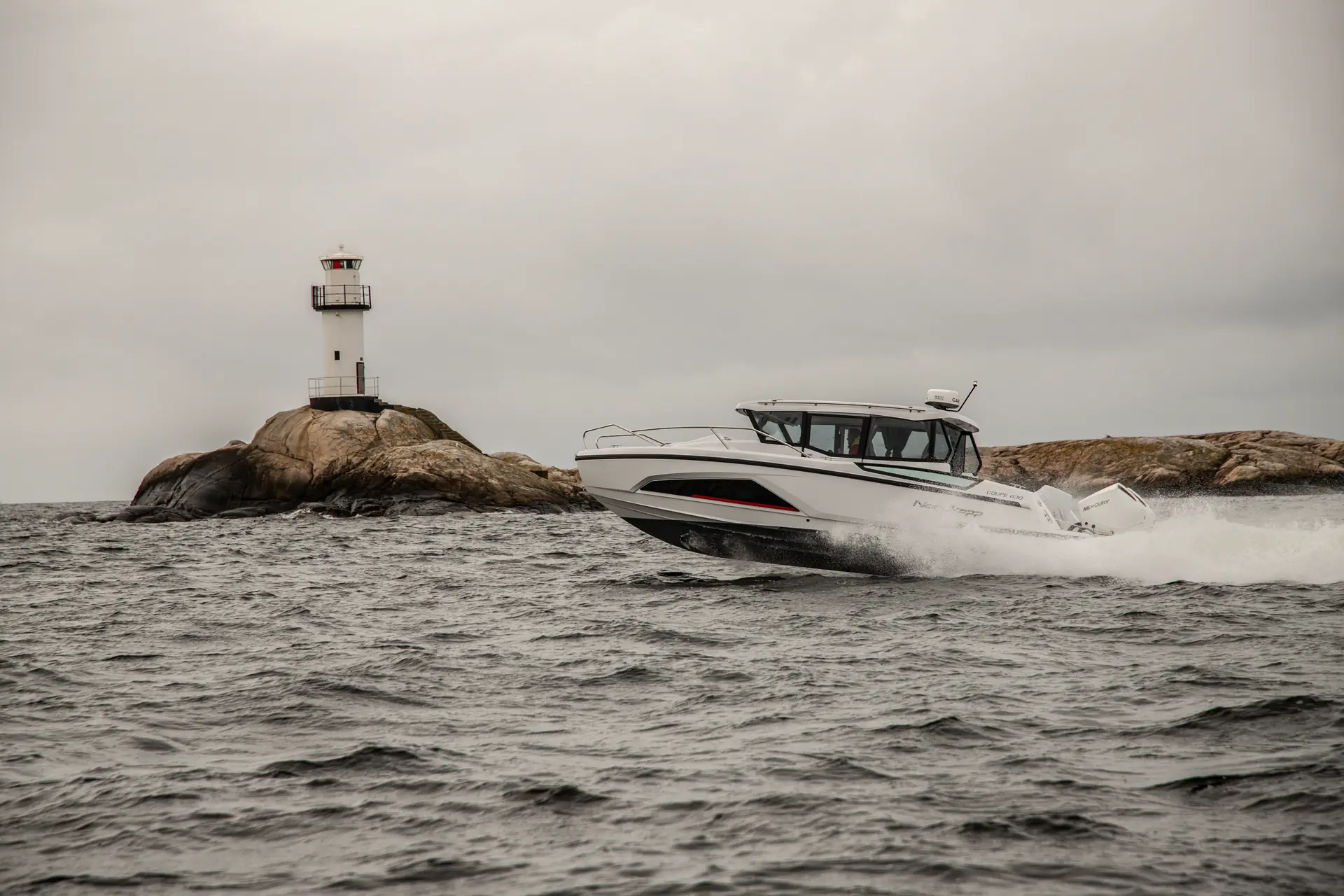 Det er tydelig at det er gjort en jobb med isolering, spesielt av lyder fra skroget og fra den åpne kabinen – samtidig som at det er få ulyder fra innredningen. Dette er så absolutt en båt vi kunne kjørt lange strekker med. Kjøreegenskapene fremstår som forutsigbare, trygge, men samtidig lekne nok til at den kan legges godt over i sving og kjøres aktivt. I alt oppleves båten som større enn det skroglengden skulle tilsi. Nordkapp Coupe 830 lever opp til å være en allsidig skjærgårdscommuter.