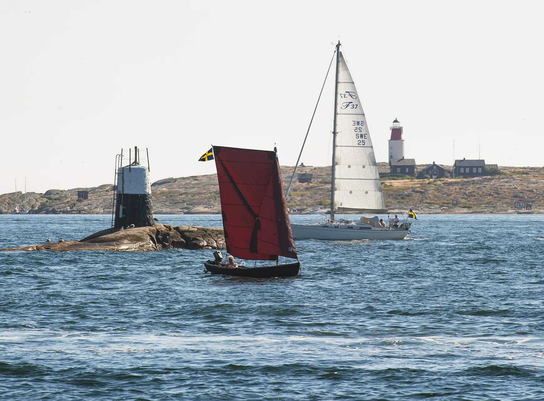Kommer du med egen båt er det naturlig å legge nedtur eller opptur gjennom idylliske Hasselösund, som skiller Smögen-øya fra fastlandet og store brua over til Kungshamn. Her er båttrafikken i juli ganske så enorm og den fortsetter i en endeløs rekke nordover mot den fem kilometer lange Sote kanalen, som ble kunstig anlagt i årene 1930 – 35. En indre led, som gjør turen for de mindre sjøsterke, til en behagelig skjærgårdstur!