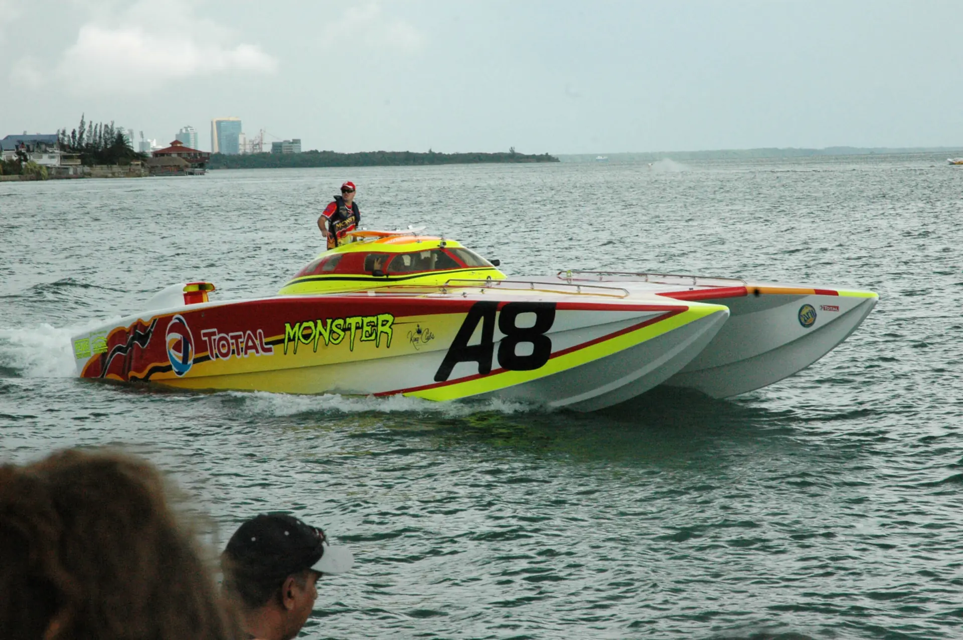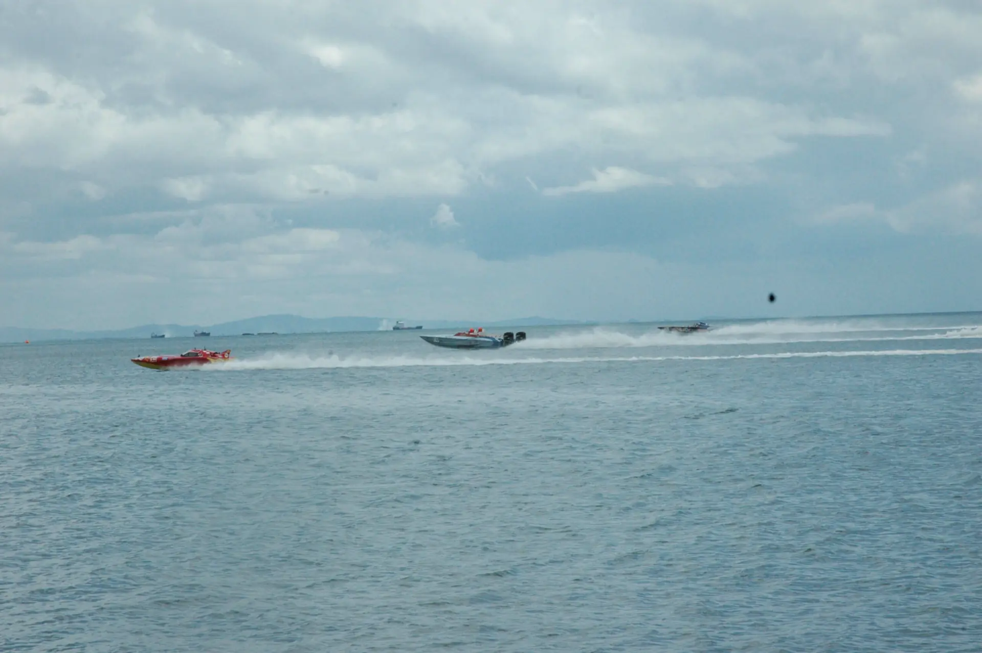 Omlag femten fargerike racebåter lå klare ved gjestebrygga, og med glasskuppelen i midten minnet de sannelig om små romskip. Ved nærmere øyekast oppdaget vi at enkelte av dem var finurlige katamaraner med supertynne skrog. Førerne hadde full utrustning og hjelm, så vi skjønte at her kom det til å gå en kule varmt. Den drønnende lyden av motoren i det den starta kunne få de fleste til å skvette i været, og for å være nøyaktig var det ikke snakk om én motor, med to gigantiske eksemplarer. Ekstra spenning var det omkring « The Total Monster», som var tilknyttet marinaen vi lå på og i løpet av karrieren hadde vært blant de raskeste båtene i verden. Ville den ta rotta på de andre konkurrentene på hjemmebane i år? Med 2 x 1200 hester og en maksfart på 180 knop skulle vel den saken være biff. Snart var det klart for take-off og flere race stod på programmet. Løypa var plassert et godt stykke fra land, så full oversikt hadde vi ikke, men det tok ikke lang tid å slå fast at monsteret levde opp til sitt navn og rykte. Speedkatamaranen suste forbi de andre båtene så vannspruten stod., og av og til sakket den farten for å leke med konkurrentene. Vel, ikke akkurat noe spenning rundt hvem som kom til å vinne, men våre venner og ansatte på Peakes var i alle fall fornøyde.