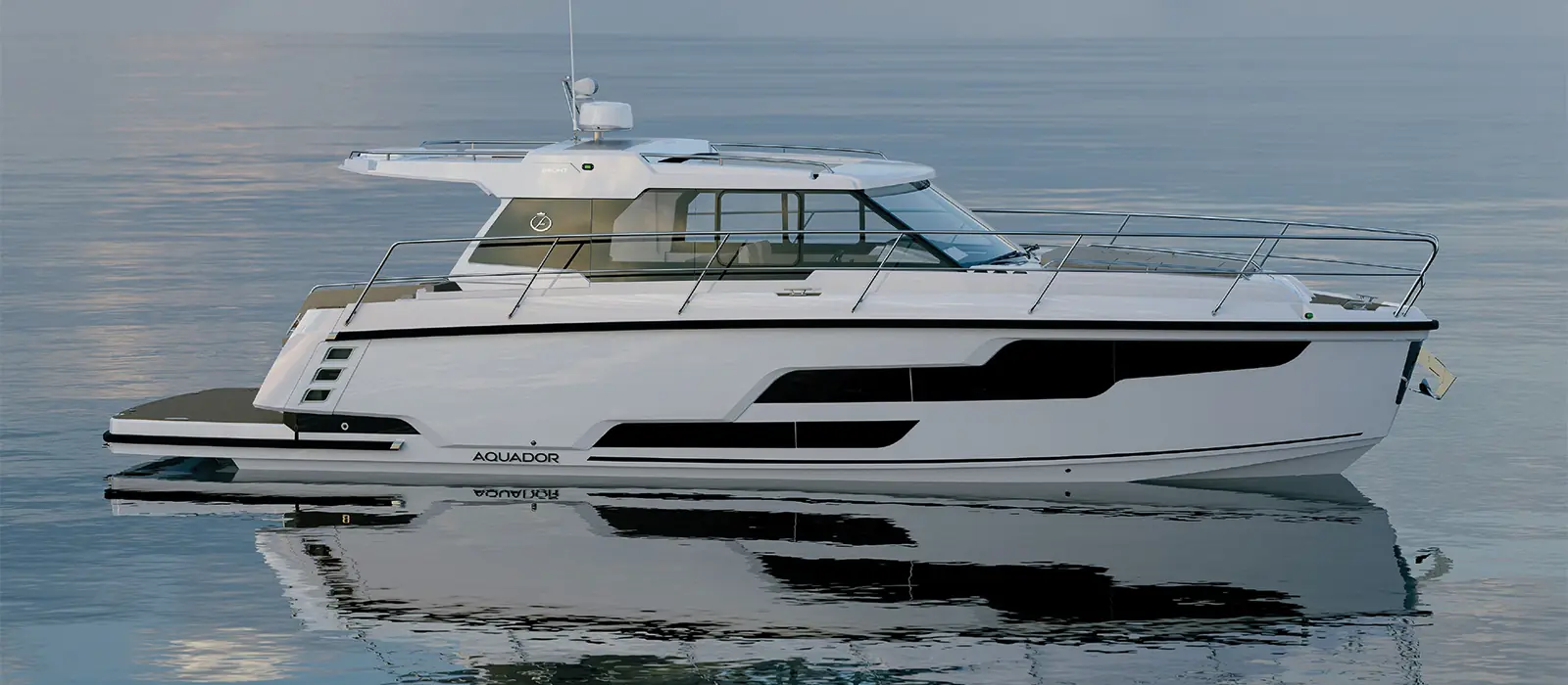 Nimbus Group bringer den svenske premieren Aquador 400 HT . Den har samme moderne design som Aquador 250 HT og 300 HT. Med doble motorer og joystick-kontroll er den enkel å manøvrere. Humphree-stabilisering sikrer en stabil og komfortabel tur.