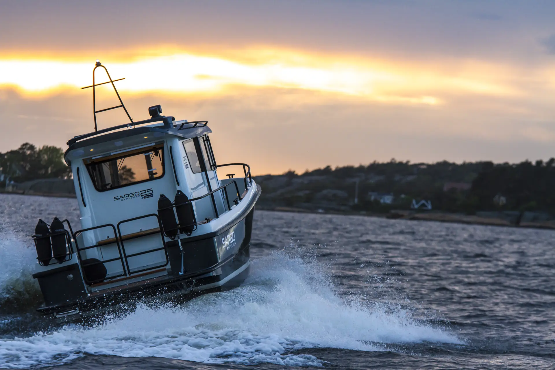 Båtens Verden har testet explorer-versjonen av minstemann i serien, Sargo 25, en mer påkostet modell med farget skrog i antrazit, stor takluke med glassinnlegg, sorte, matte syrefaste rekker ute, treverk i valnøtt og nextell på styrekonsoll – blant annet. Fargene utendørs er med på å gi båten et tøft og sportslig design som kanskje har vært forbeholdt de større styrhusbåtene tidligere, og det er ingen tvil om at Sargo har lykkes med å gi minstemann klare og søskenlike designtrekk. De moderne – men ikke for radikale linjene og designet går igjennom hele båten, så her er det tenkt nytt fra finnene.