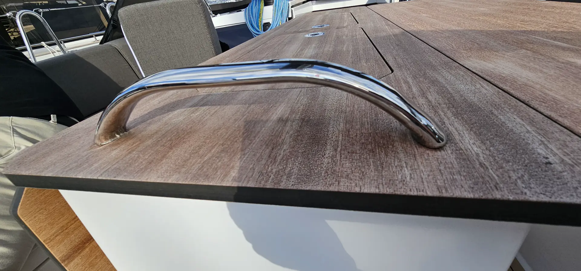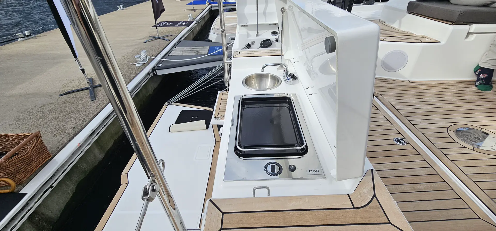 På badeplattformen kan du få vask og grill, og nytt på badeplattformen er at du kan gå opp til cockpit fra begge sider.