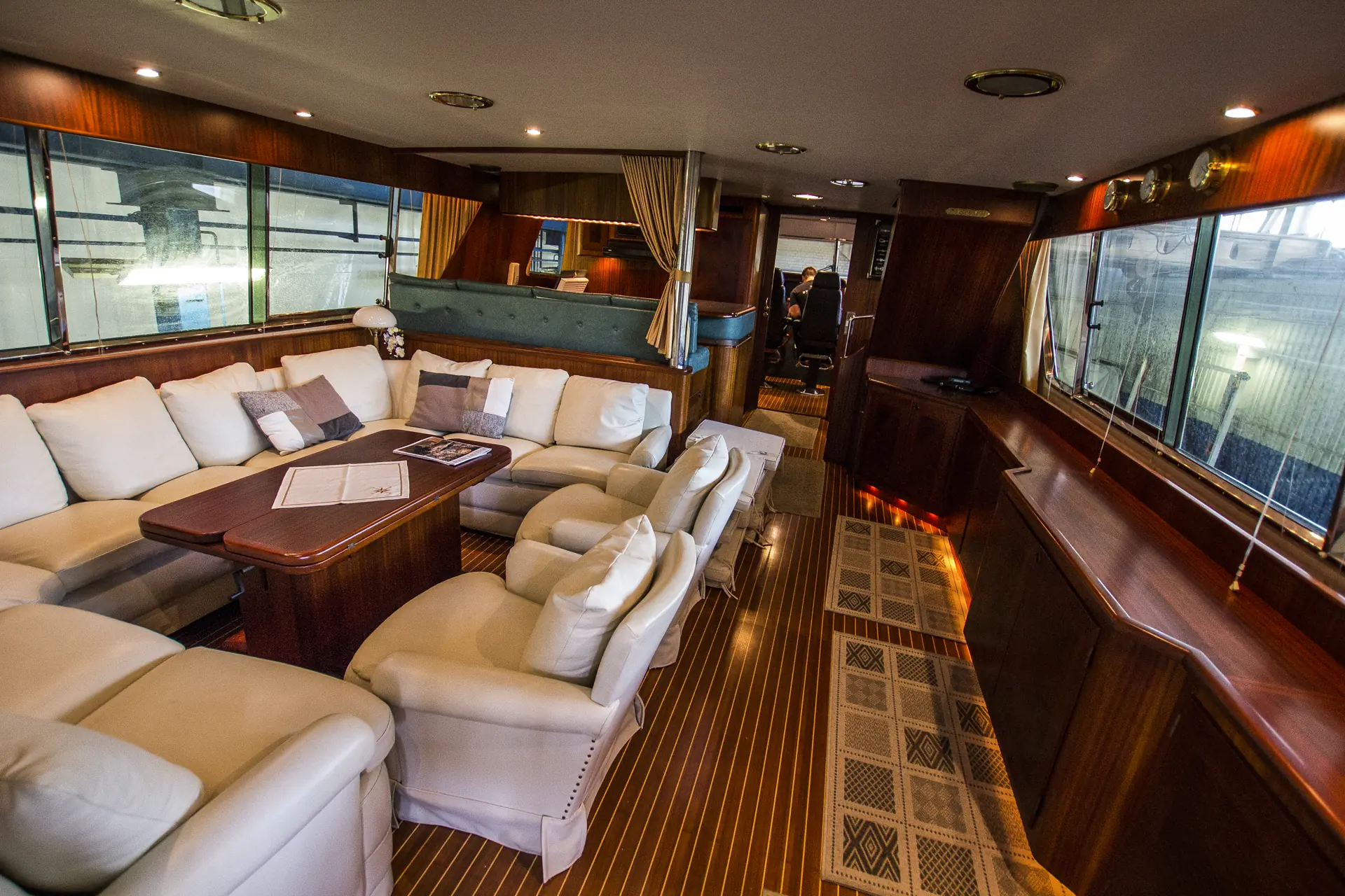 – Det ble en smørbrødliste på tre sider i første omgang. Lakkering utvendig er viktig, bytte fenderlister, gå over teaken, se over ting som er slitt, bygge om dashbordet på flybridgen, kle om puter til beige, bygge om dashbordet nede til mer digitalt, bytte alle lys til LED, skrape av bunnstoff og primer helt ned til gelcoat, for så å bygge opp igjen, bytte hvitevarer, utvide badeplattformen og bytte motor til IPS. Da lever båten i tyve – tretti år til, og det er der hjertet vårt ligger, avrunder Asbjørn Abrahamsen for denne gang.