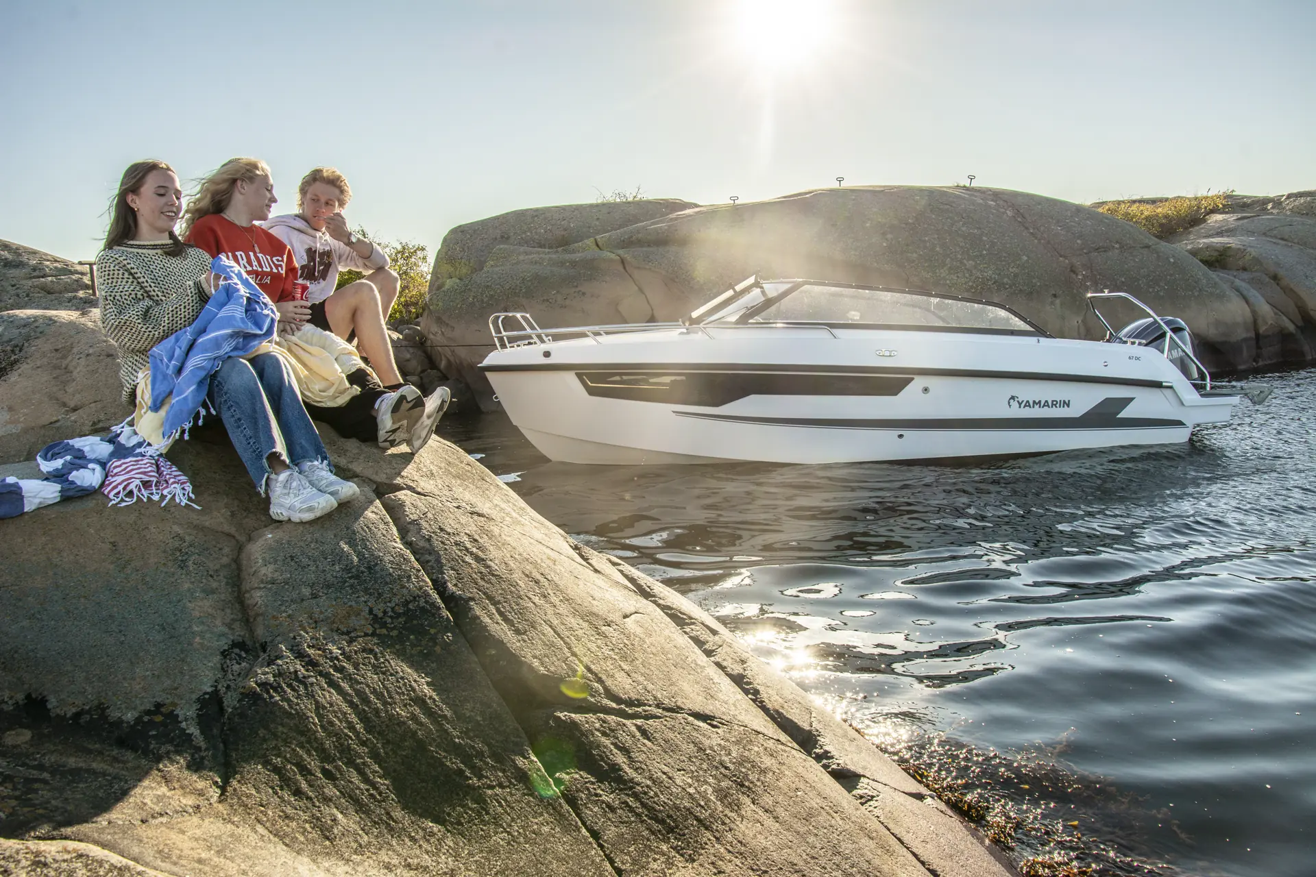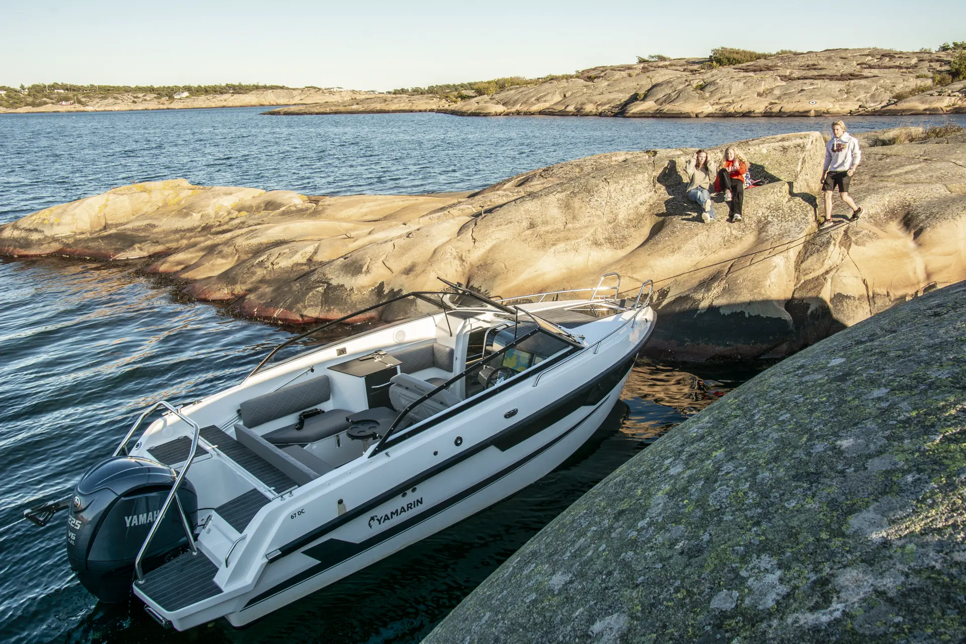 Yamarin 67 DC er godkjent for åtte personer og har sitteplasser til dem alle med litt smidighet i en trygg og dyp cockpit. Det er enkel adkomst på babord side ut til to store badeplattformer. Salongen har høye rygger og plass til seks personer rundt et bord som er todelt og kan flippes ut. Bordet kan også stuves bort, som gir bedre bevegelighet i cockpiten. Samtidig kan det felles ned for en solseng.