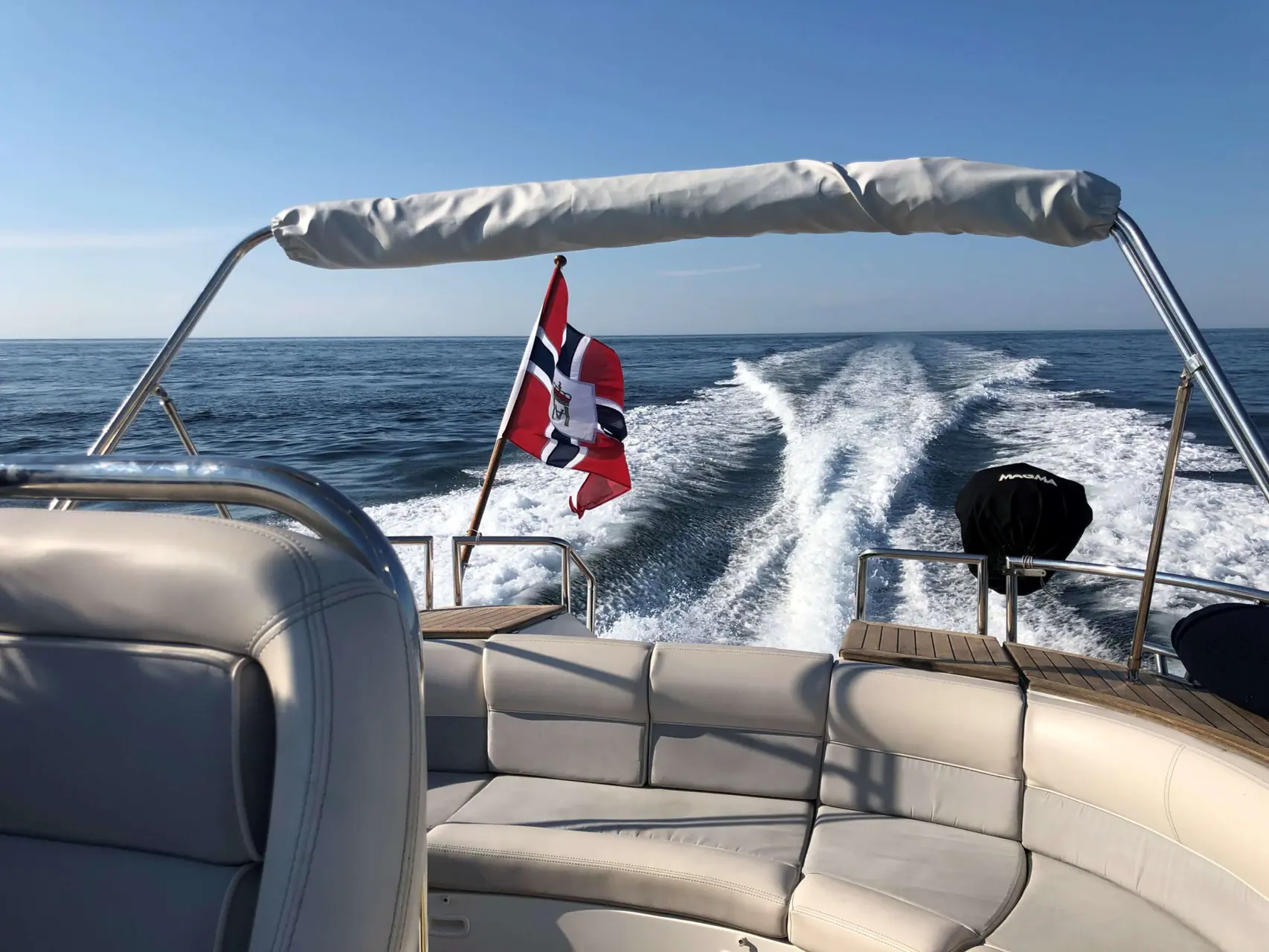 Vi begynte, som vanlig, med værmeldingen og lette etter noen timer med havblikk. For én gangs skyld ville vi ikke ha mye vind. Sverige er utelukket, denne sommeren. Derfor satte vi kursen mot Skagen. Noen bølger ved Garnholmen justerte farten, men fra Søsterøyene var det blankt hav, og Fredrik la båten i marsjfart på 30 knop!