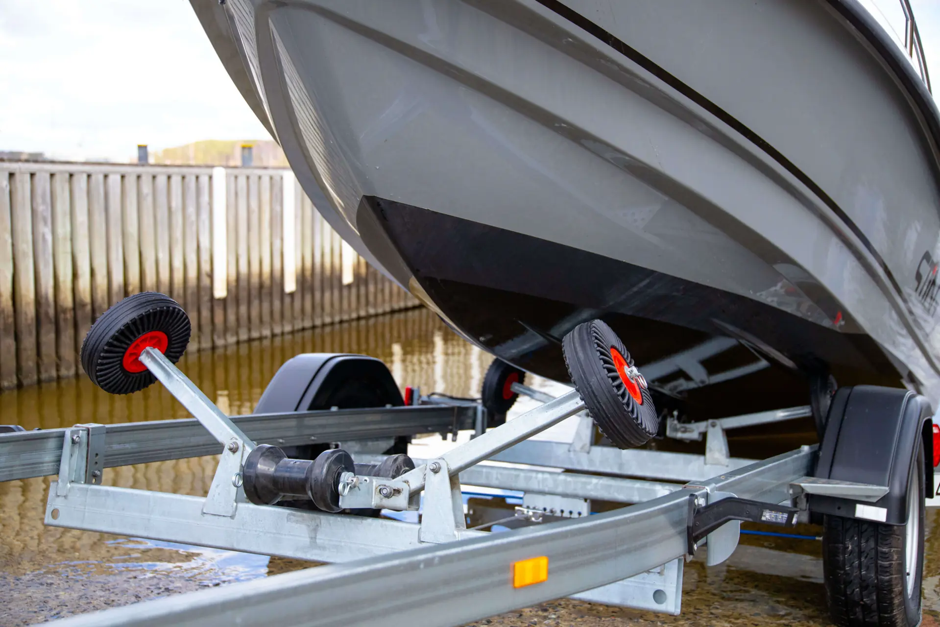 - Tilhengeren skal ikke rygges lenger ned i sjøen enn at vannet står opp til felgen. Husk å fjerne eller vippe til side lysbrettet på selve hengeren.