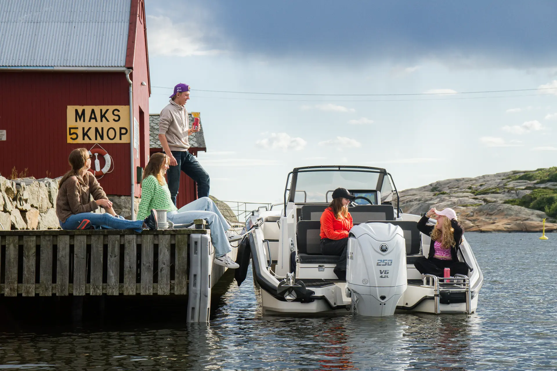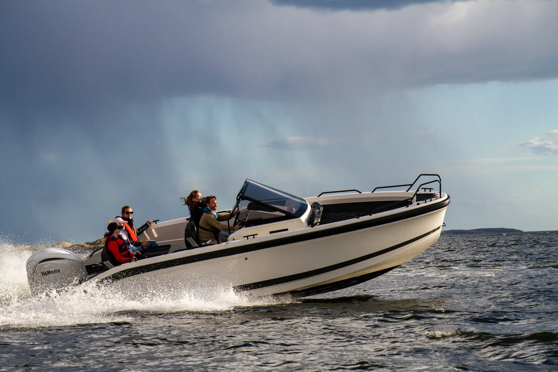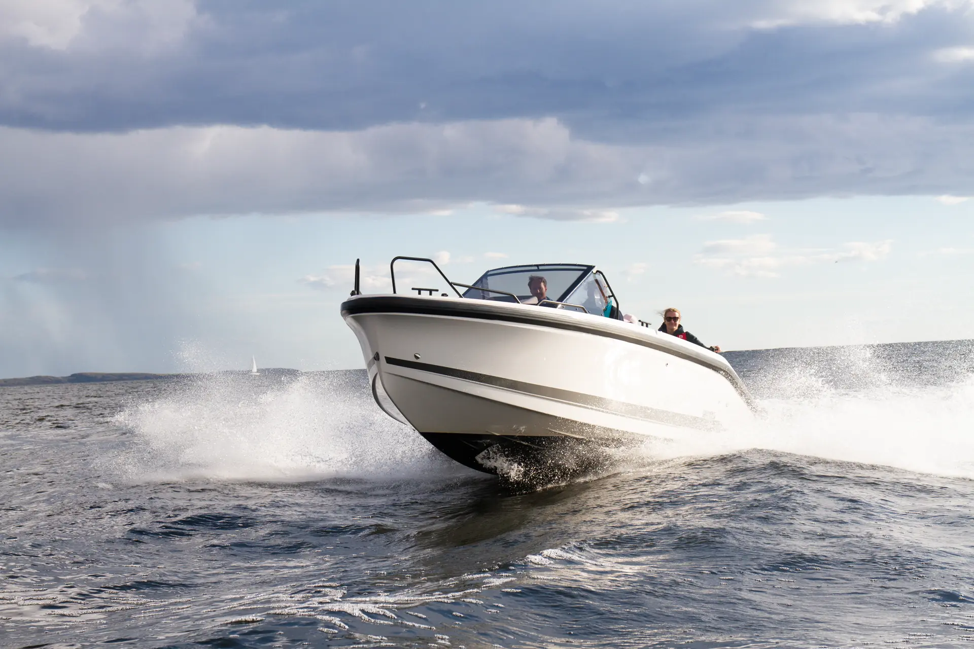 Vi måler toppfarten til 45 knop med et drivstofforbruk på 93 liter per time. Marsjfarten ligger rundt 25-30 knop, og i 28 knop viser forbruket 35 liter per time. Båten oppfører seg forutsigbart i svinger, og oppleves som lettkjørt. Vi fikk testet båten i like over én meters mot- og medsjø denne dagen, og båten takler bølgene bra uten alt for mange vibrasjoner og slag.